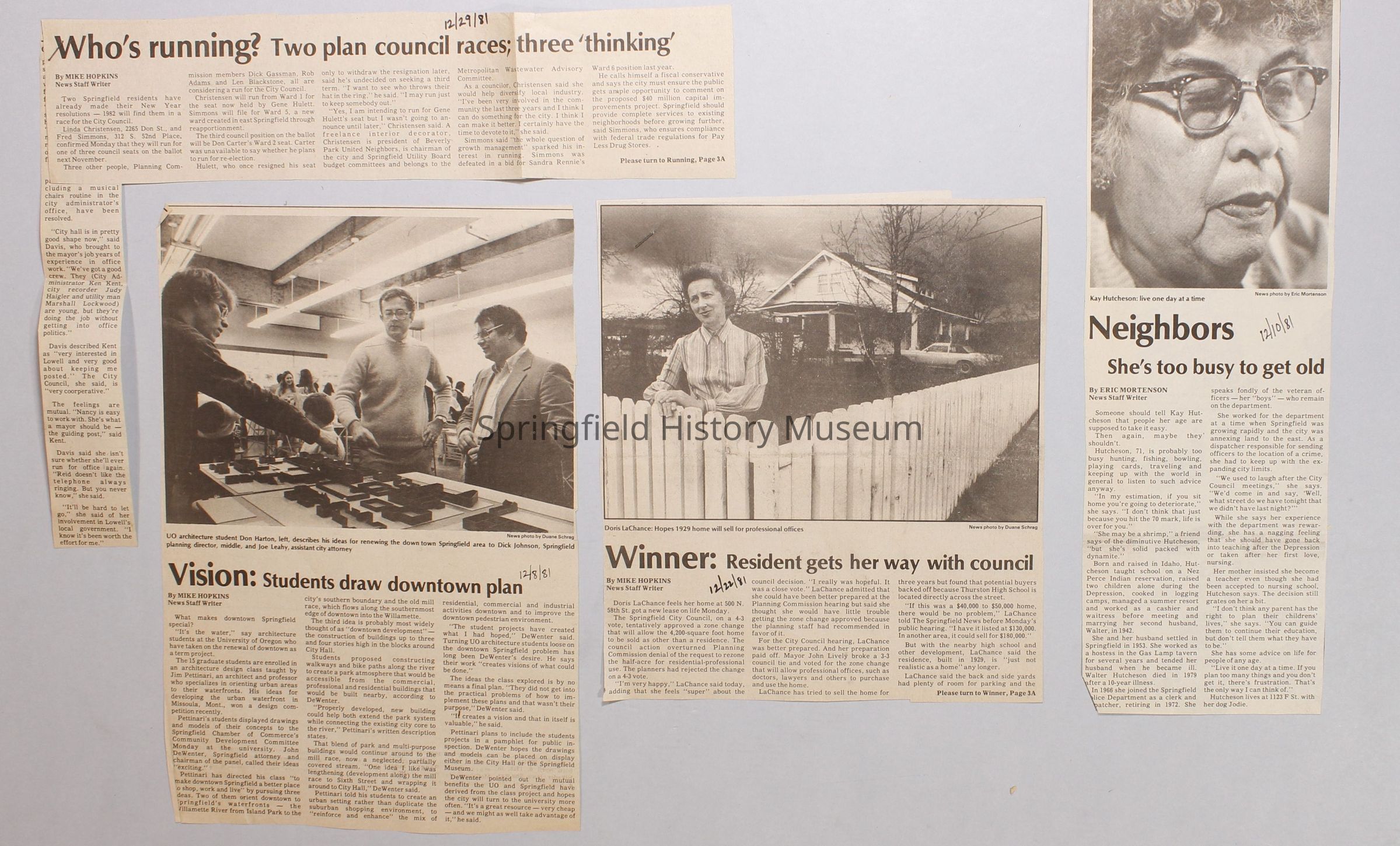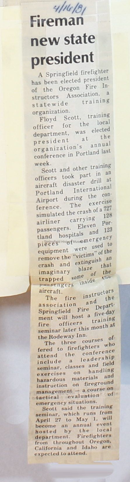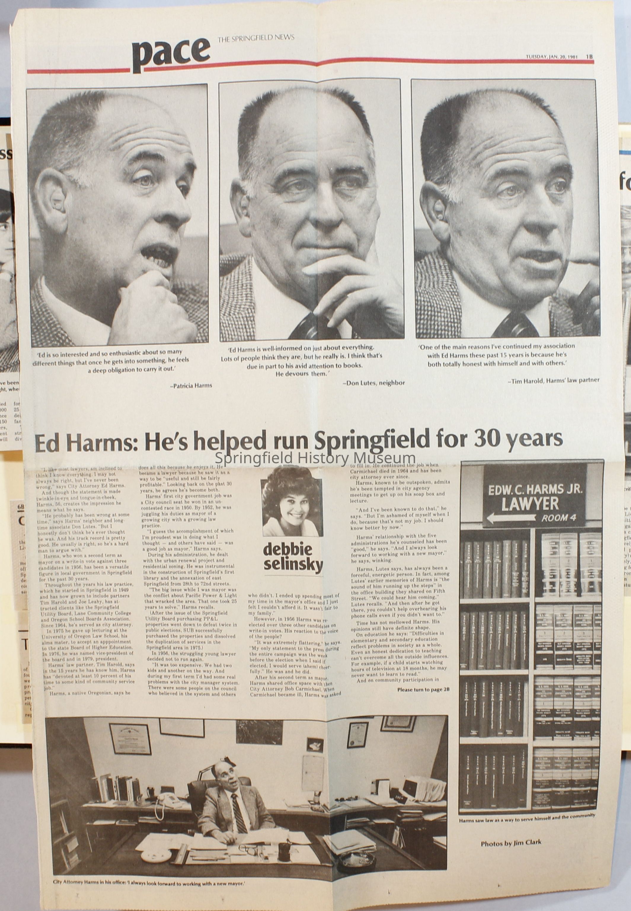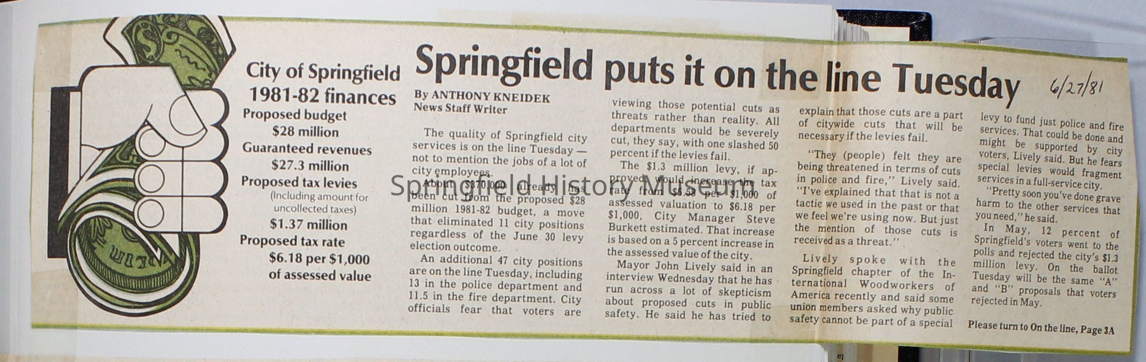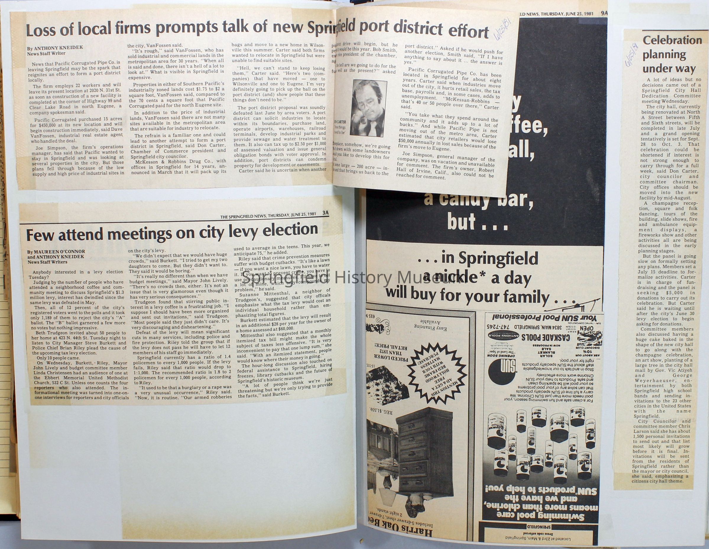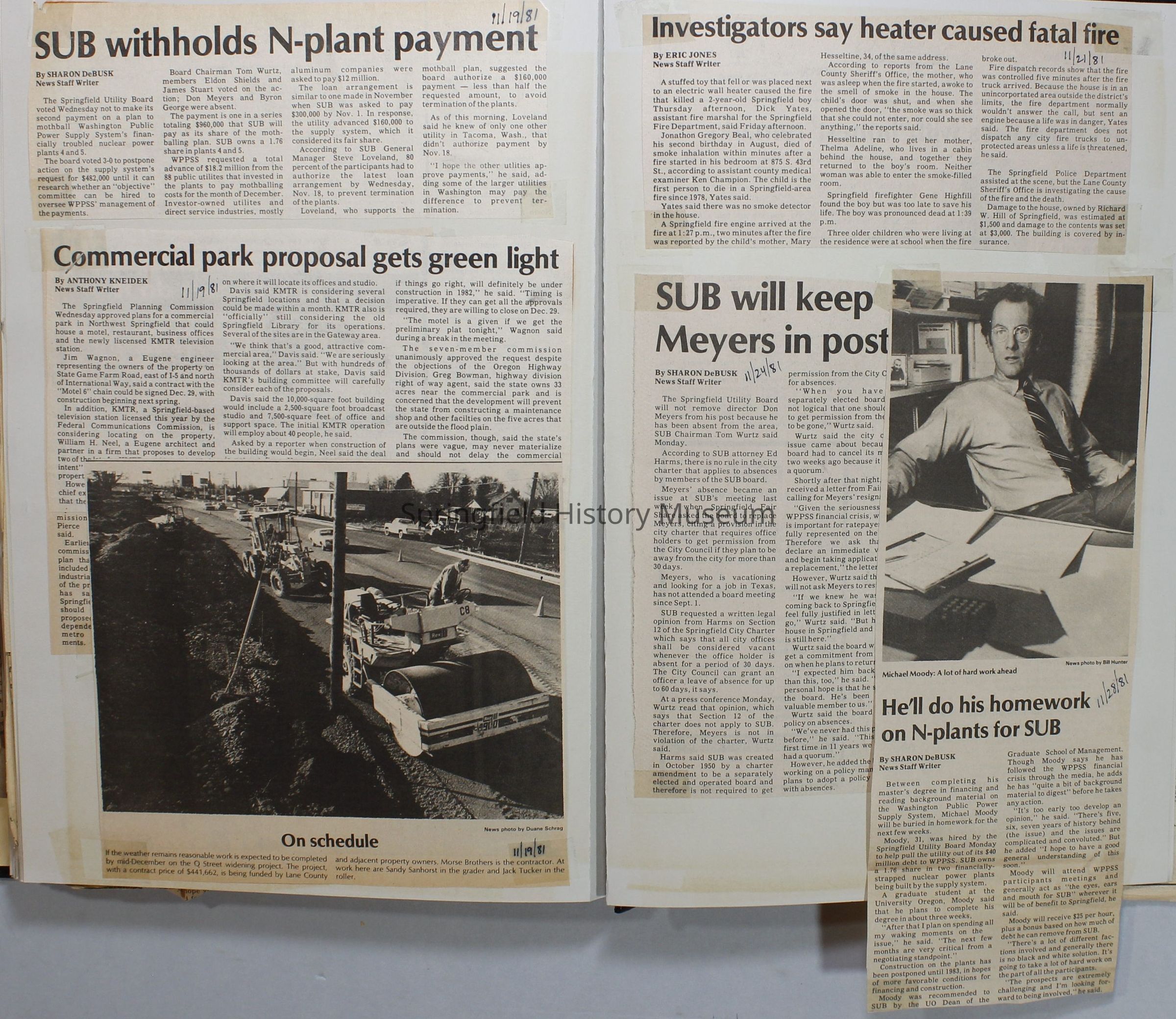 Scrapbook on the government of Springfield, Oregon. Newspaper articles from the Springfield News, 1981.