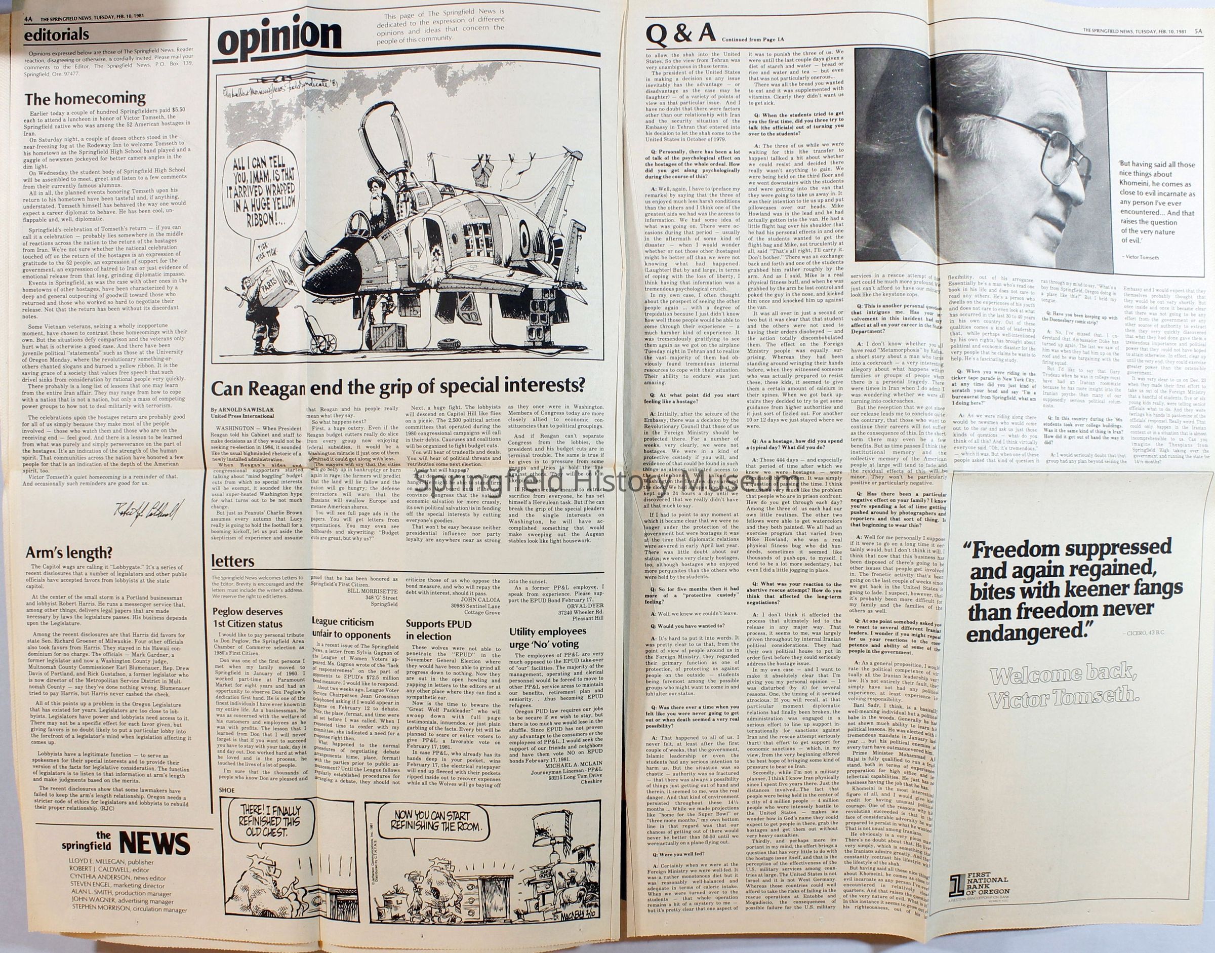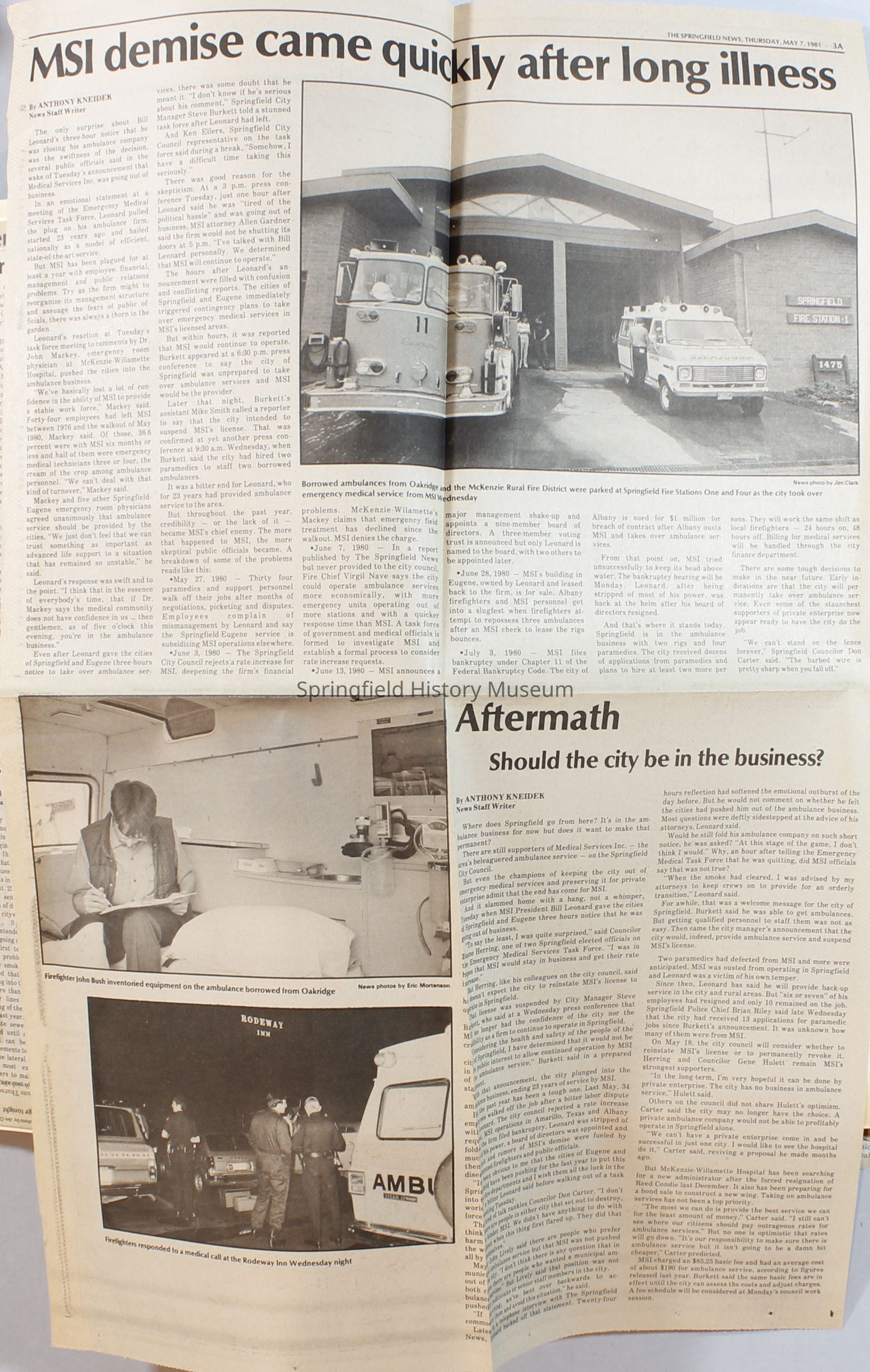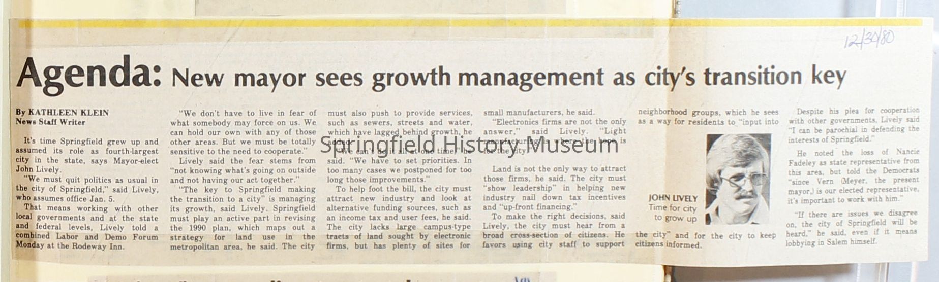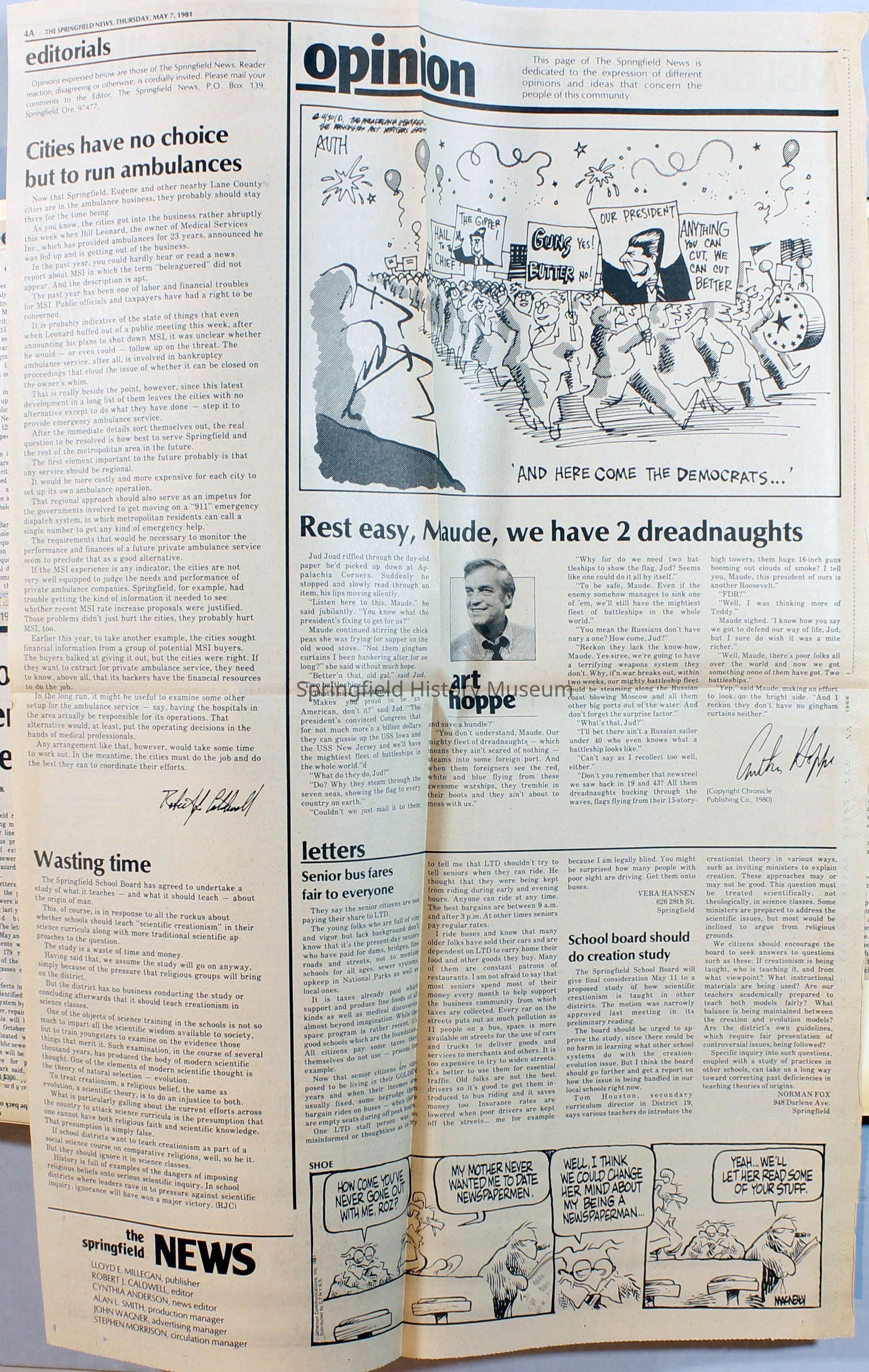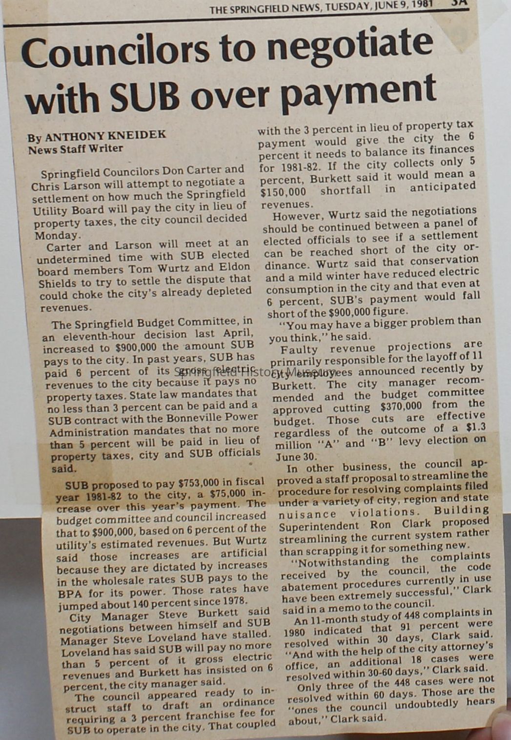 Scrapbook on the government of Springfield, Oregon. Newspaper articles from the Springfield News, 1981.