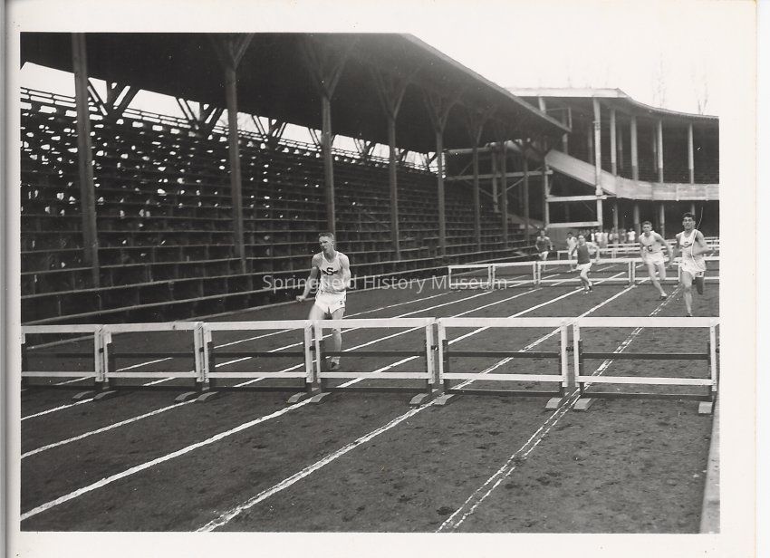 Clair Thomas, Springfield High runner, at track meet, Hayward Field, University of Oregon, 1940's.Entry/Object ID