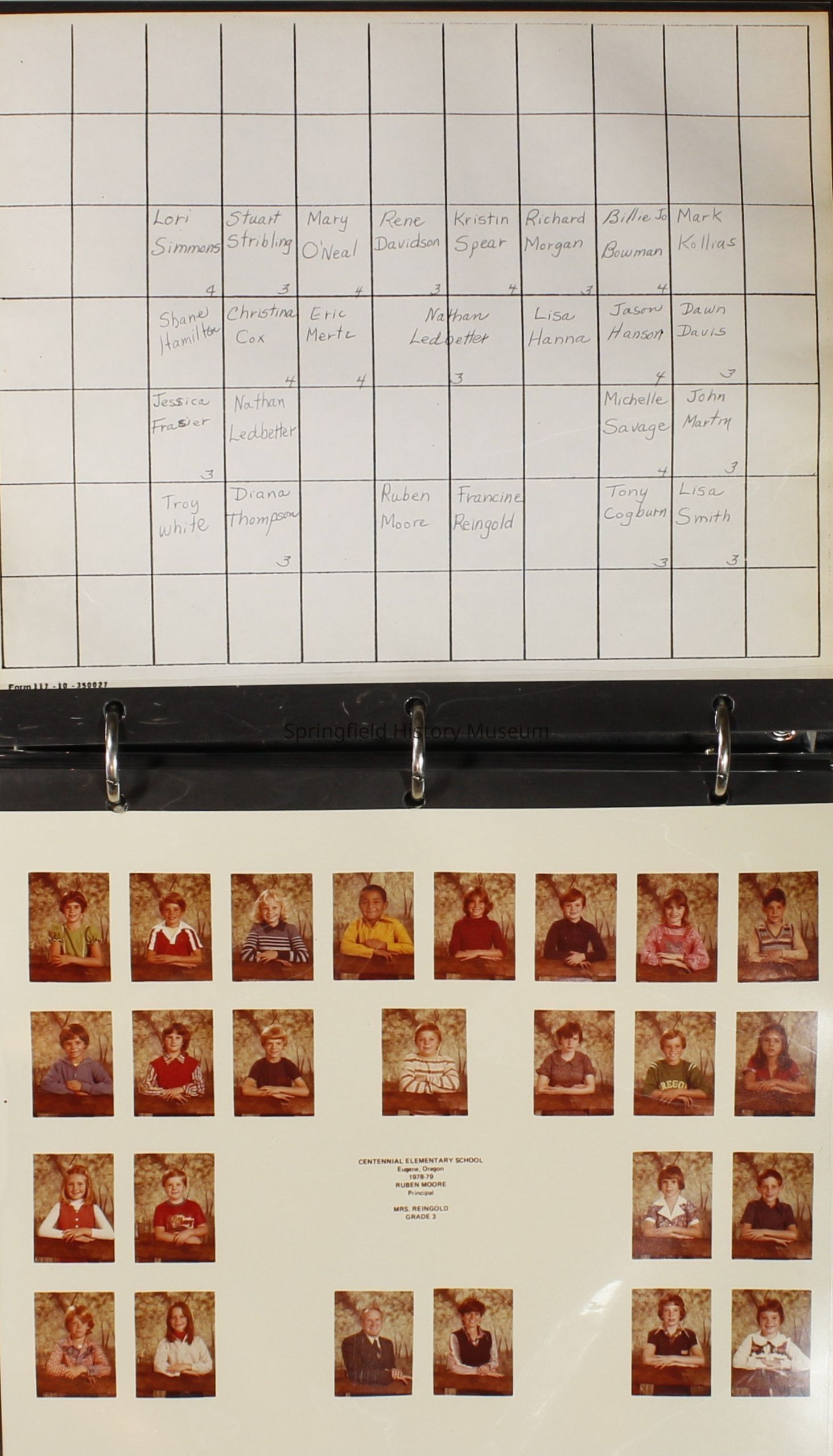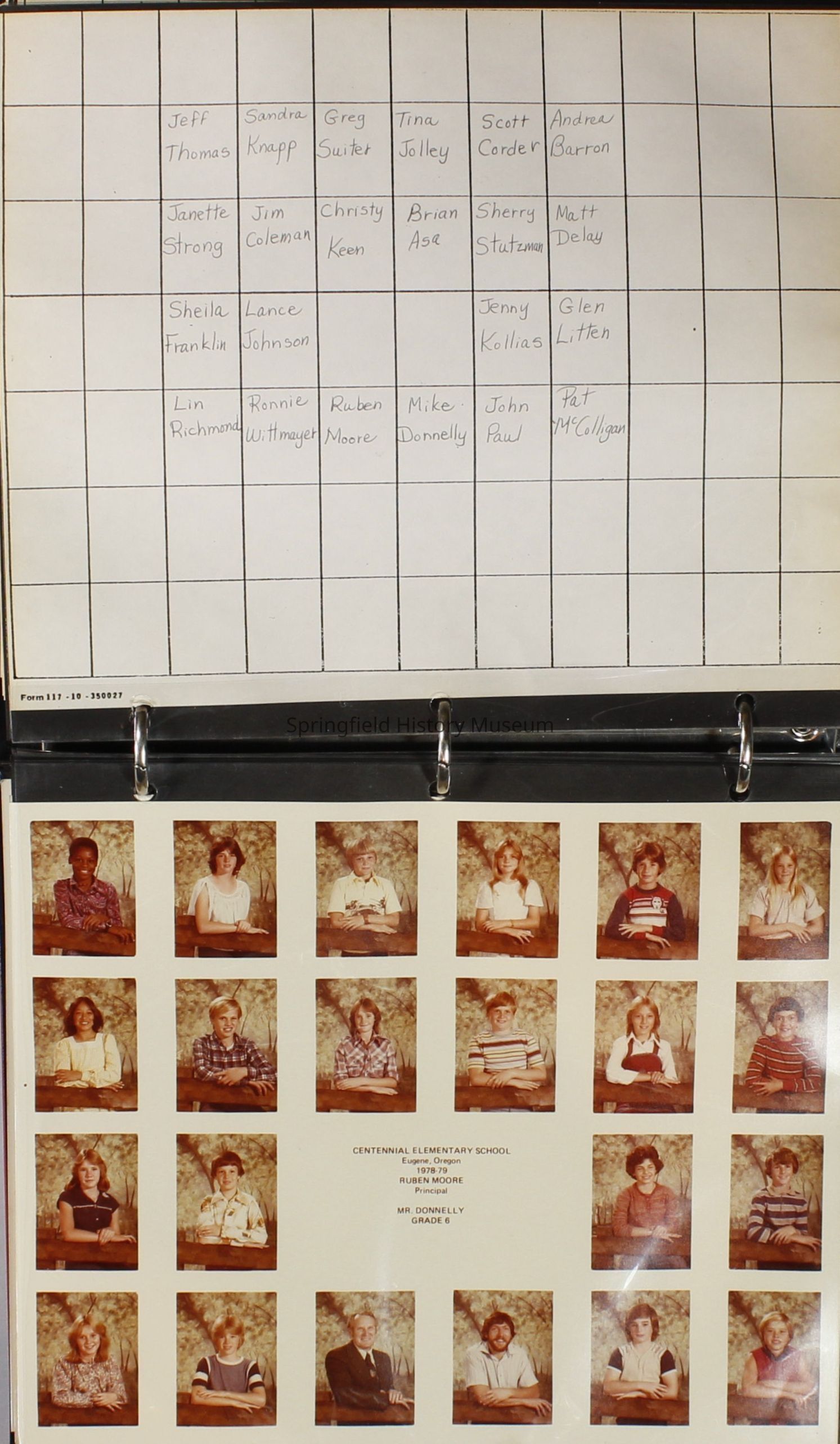 Class and Staff photographs, Centennial Elementary School, 1978-1979. Stored in a photograph album.Photograph Details