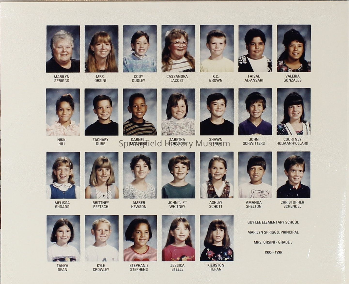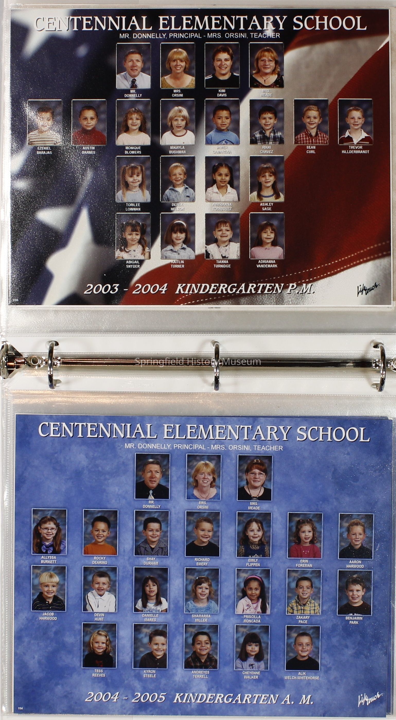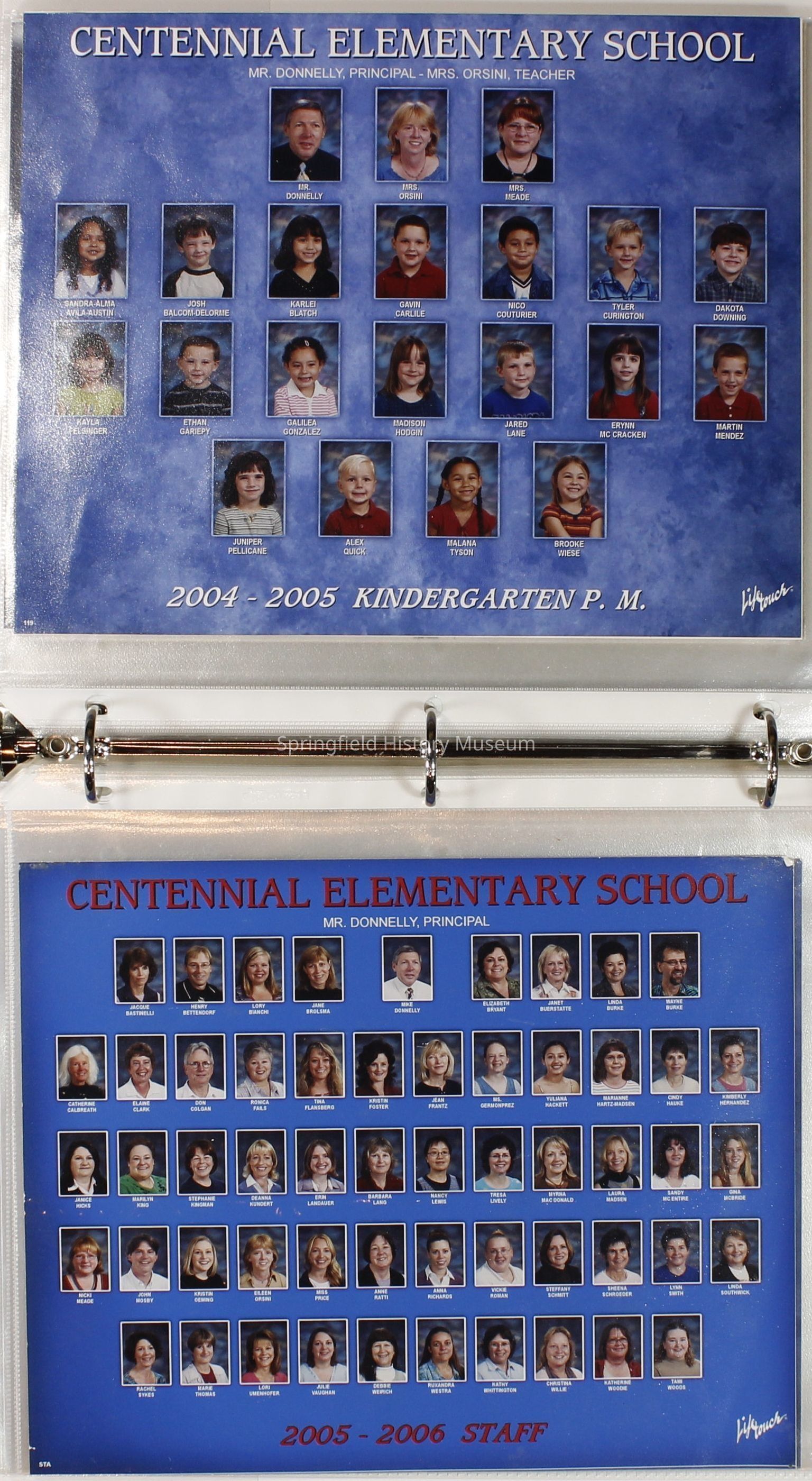 Class and Staff photographs, Mrs. Eileen Orsini, Centennial Elementary School, 1990-2007. Stored in a photograph album. One photograph of Guy Lee Elementary.Photograph Details