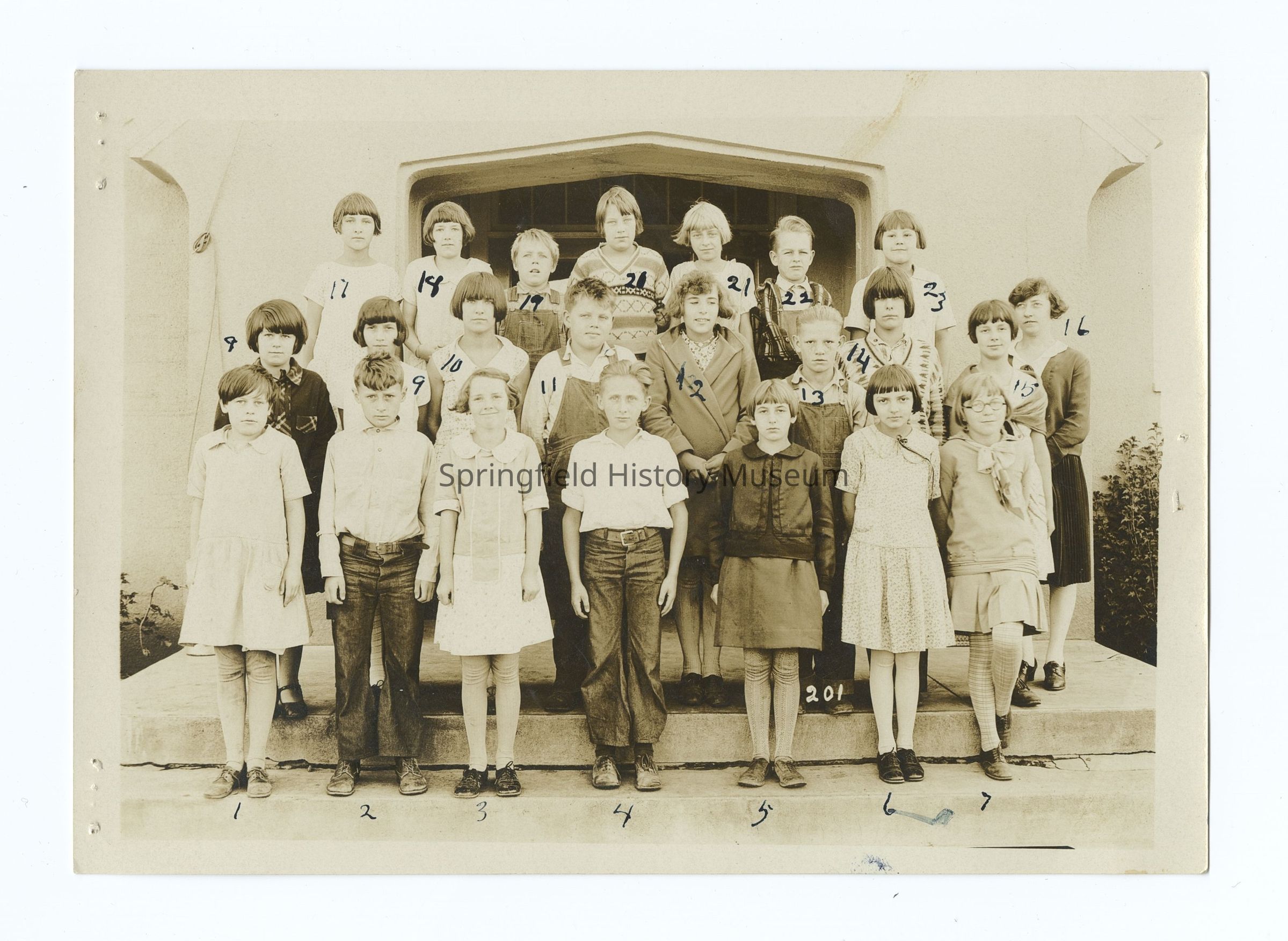-Photograph 2: #201, Students are numbered 1-23 on the back: 1) Jean Lonk, 2) Disque Smith, 3) Shirley Smith, 4) Jimmy Phillips, 5) Helen Davis, 6) Mildred Morgan, 7) Margaret Jarrett, 8) Evelyn Gormley, 9) Lucille MacLash, 10) Fay Johnson, 11) James, 12) Lila Longmire, 13) Joe Krupka, 14) Marjorie Johnson, 15) Wilma Lipe, 16) Mae, 17) Velma Peddicord, 18) Marion Thompson, 19) Sammy Gott, 20) Fern Fisher, 21) Nellie Hawes, 22) Charles Maxwell, 23) Olga Hrynchuk;