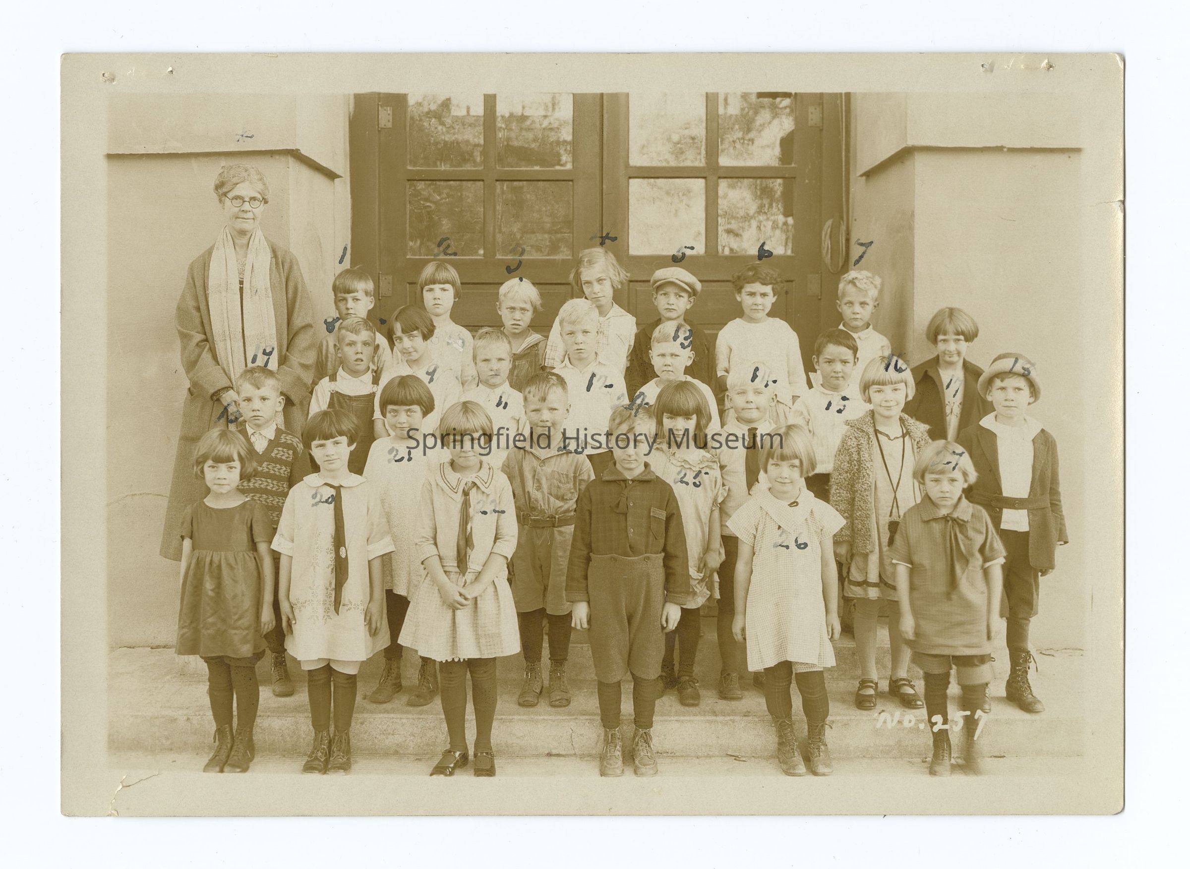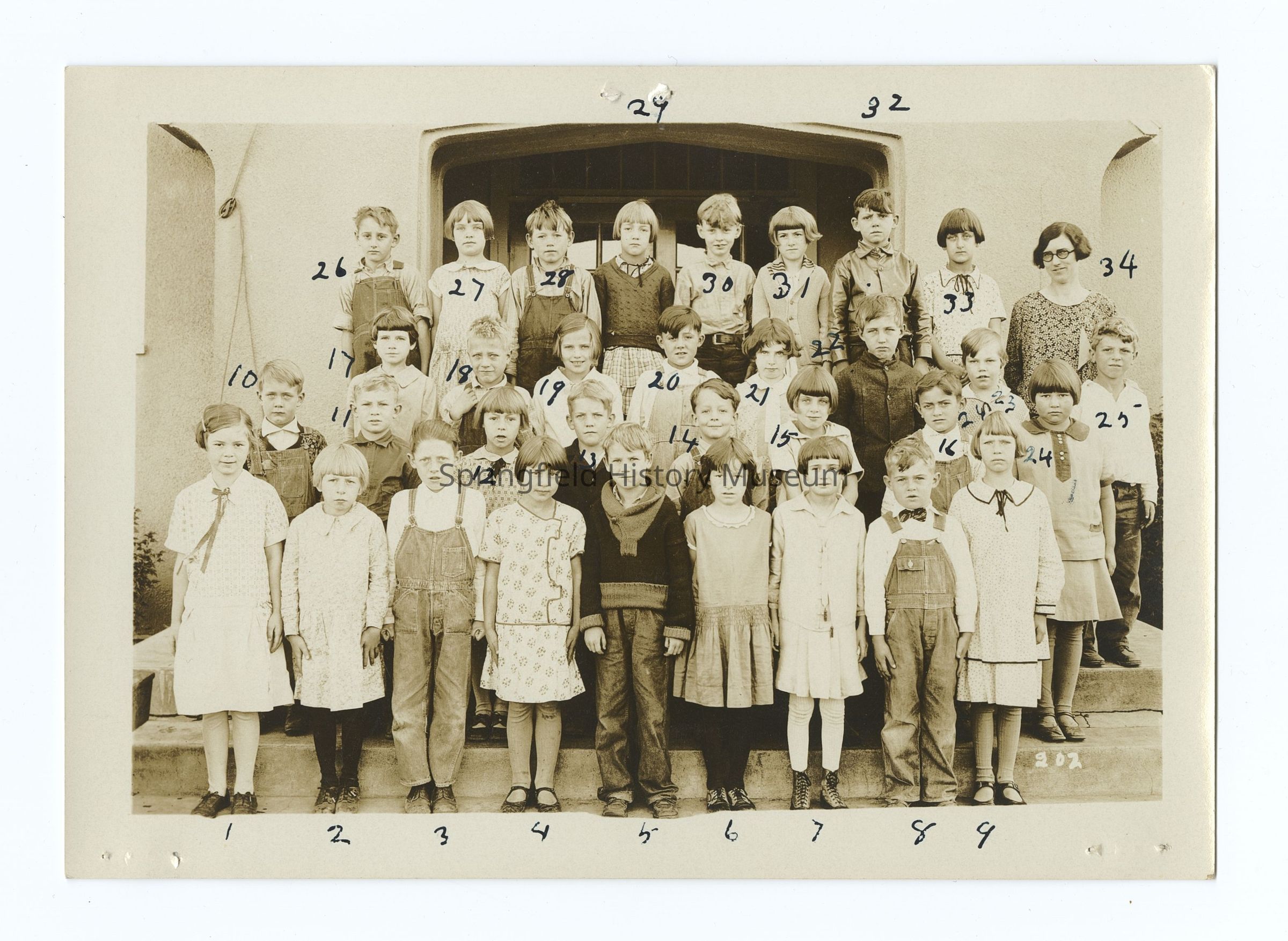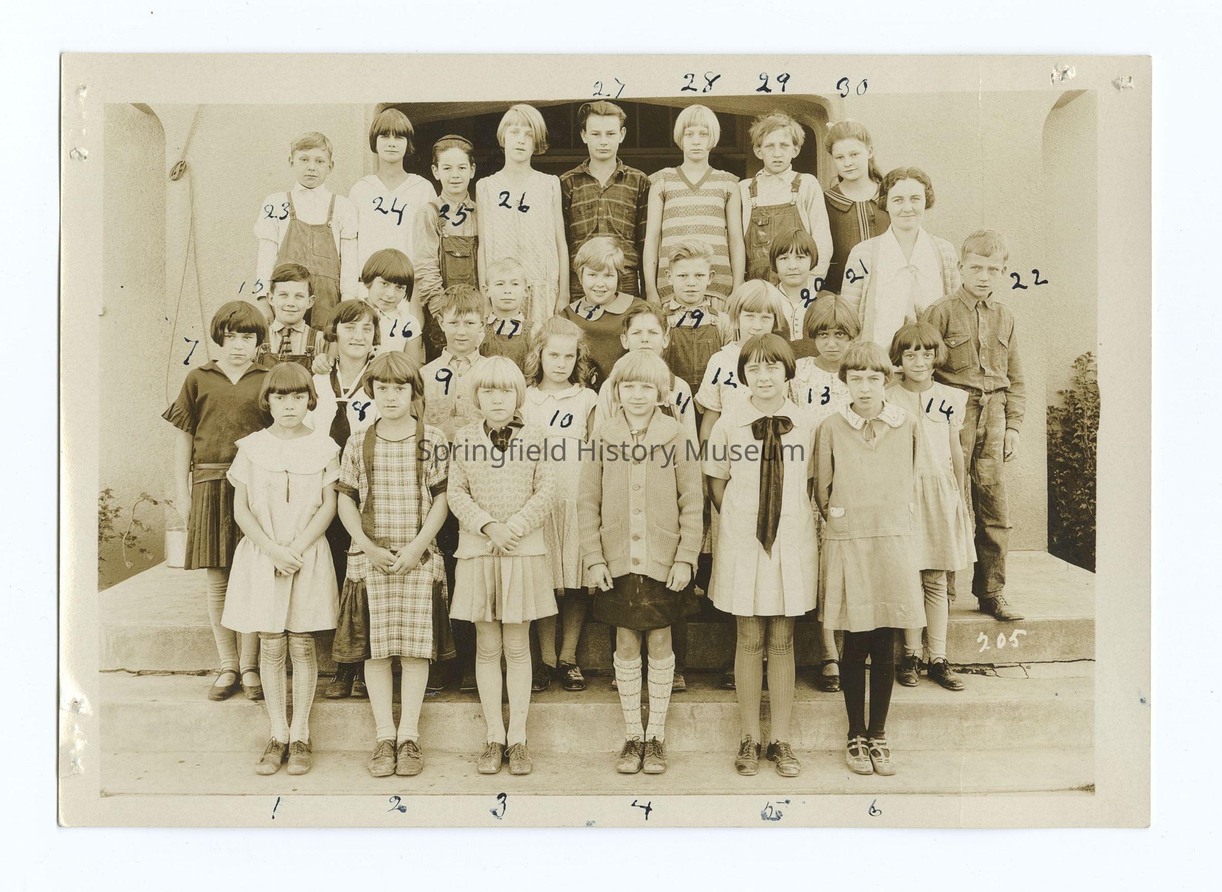 - Photograph 2: Mrs. Anne Gorrie Van Valzah, 5th grade 1928, nr 205, 5B-1928, Students are numbered, names on back: