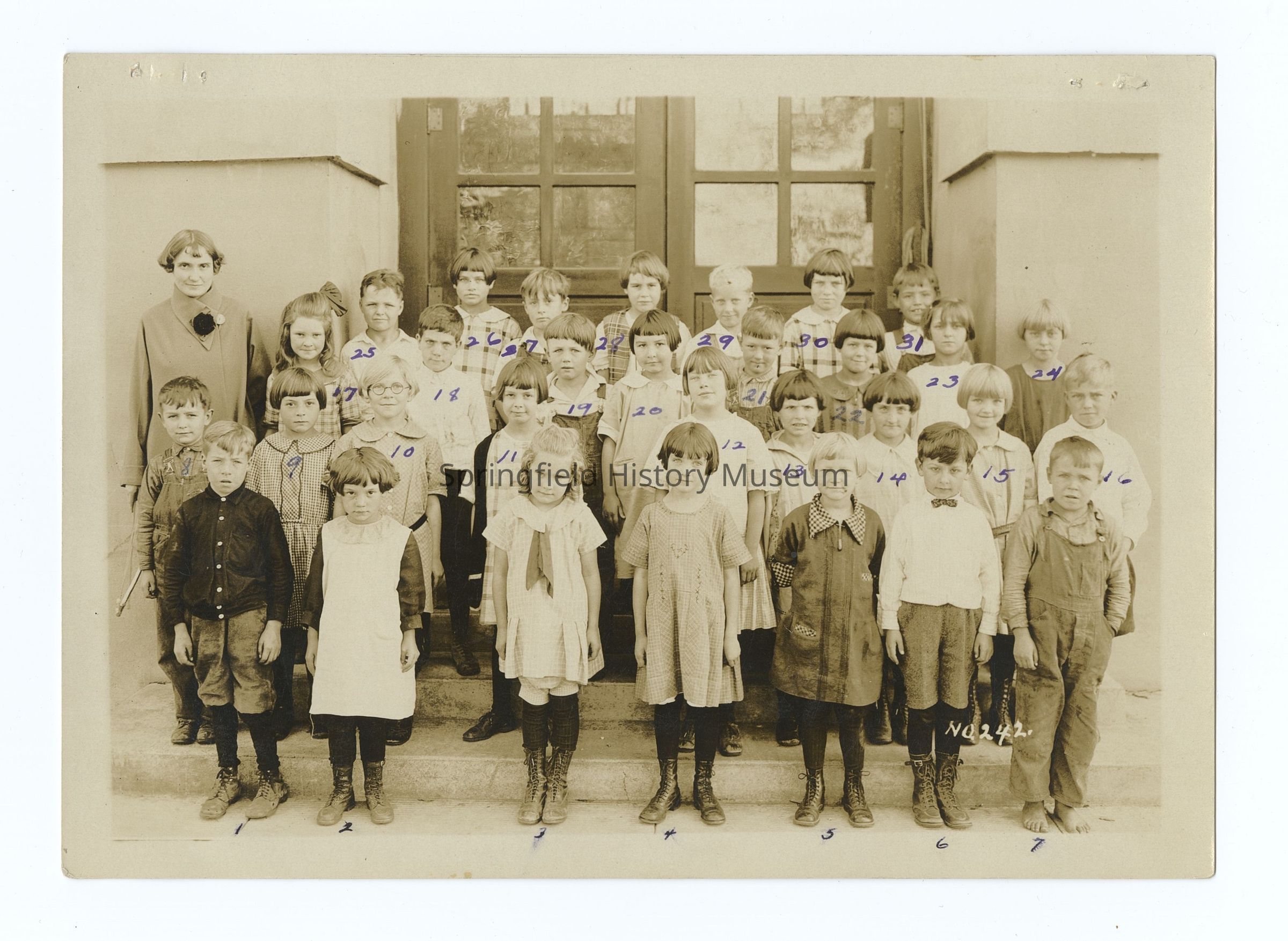- Photograph 4: Mrs. Opal Roberts, nr. 242, Students are numbered, names on back: