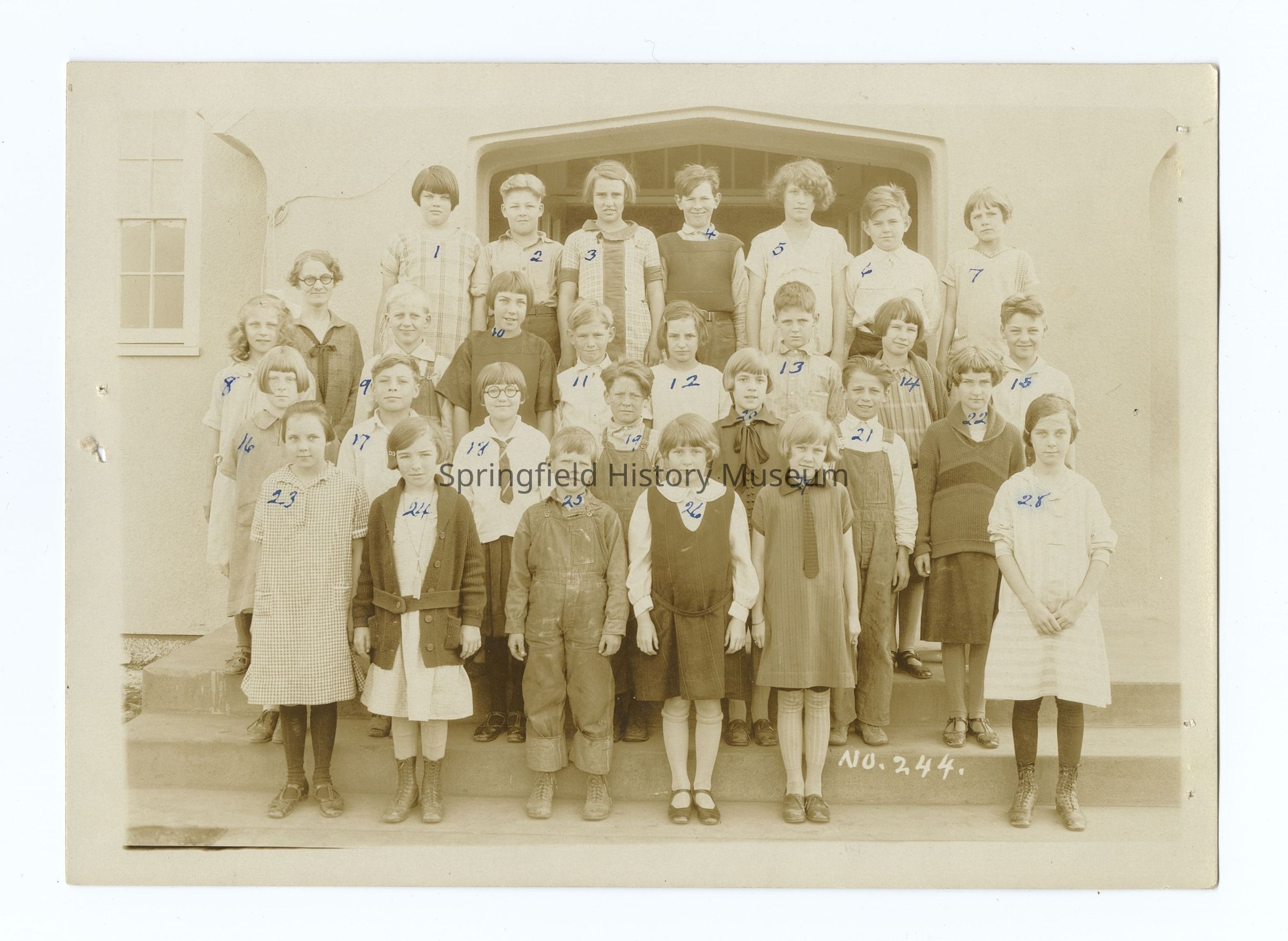 - Photograph 9: Miss Nina Boesen 5th B. 1925, nr 244, Students are numbered, names on back: