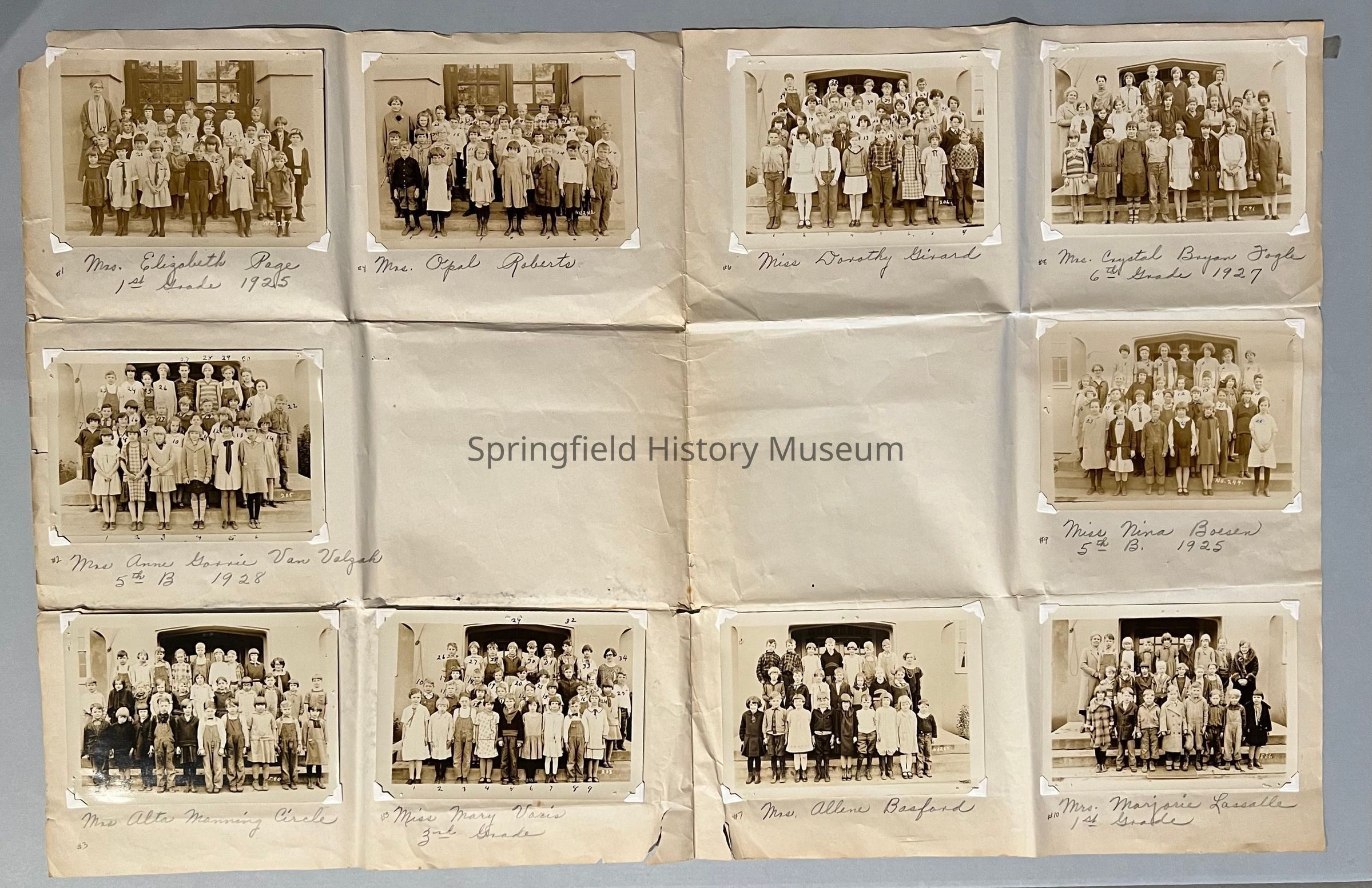 10 Class photographs, Brattain School, Springfield, circa 1925-1928. Ten 5 by 7 photographed mounted on 34 by 22 paper.