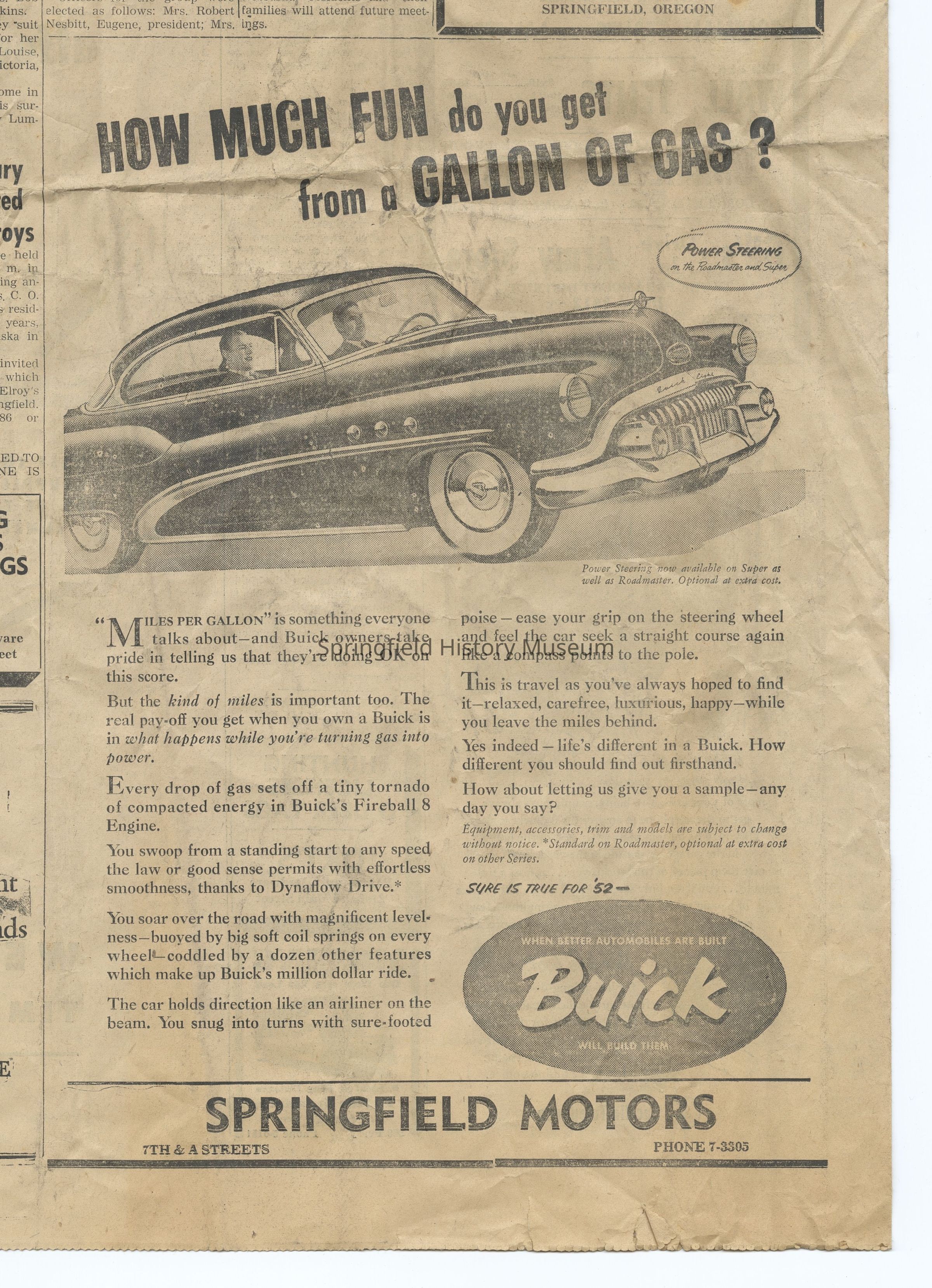 -Springfield Buick ad, Springfield News, September 25, 1952, scanned