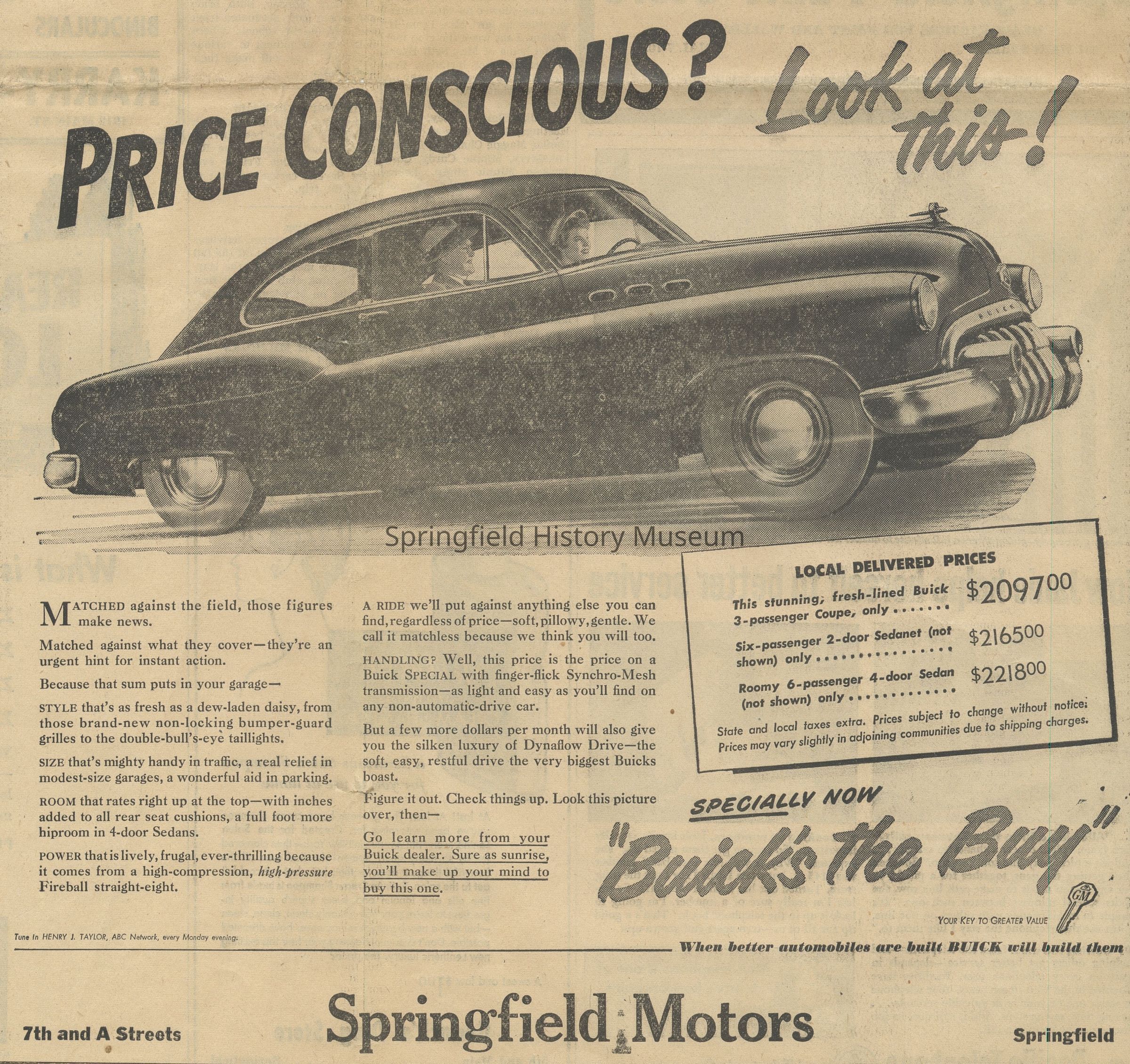 -Springfield Buick ad, Springfield News, September 15, 1949, scanned