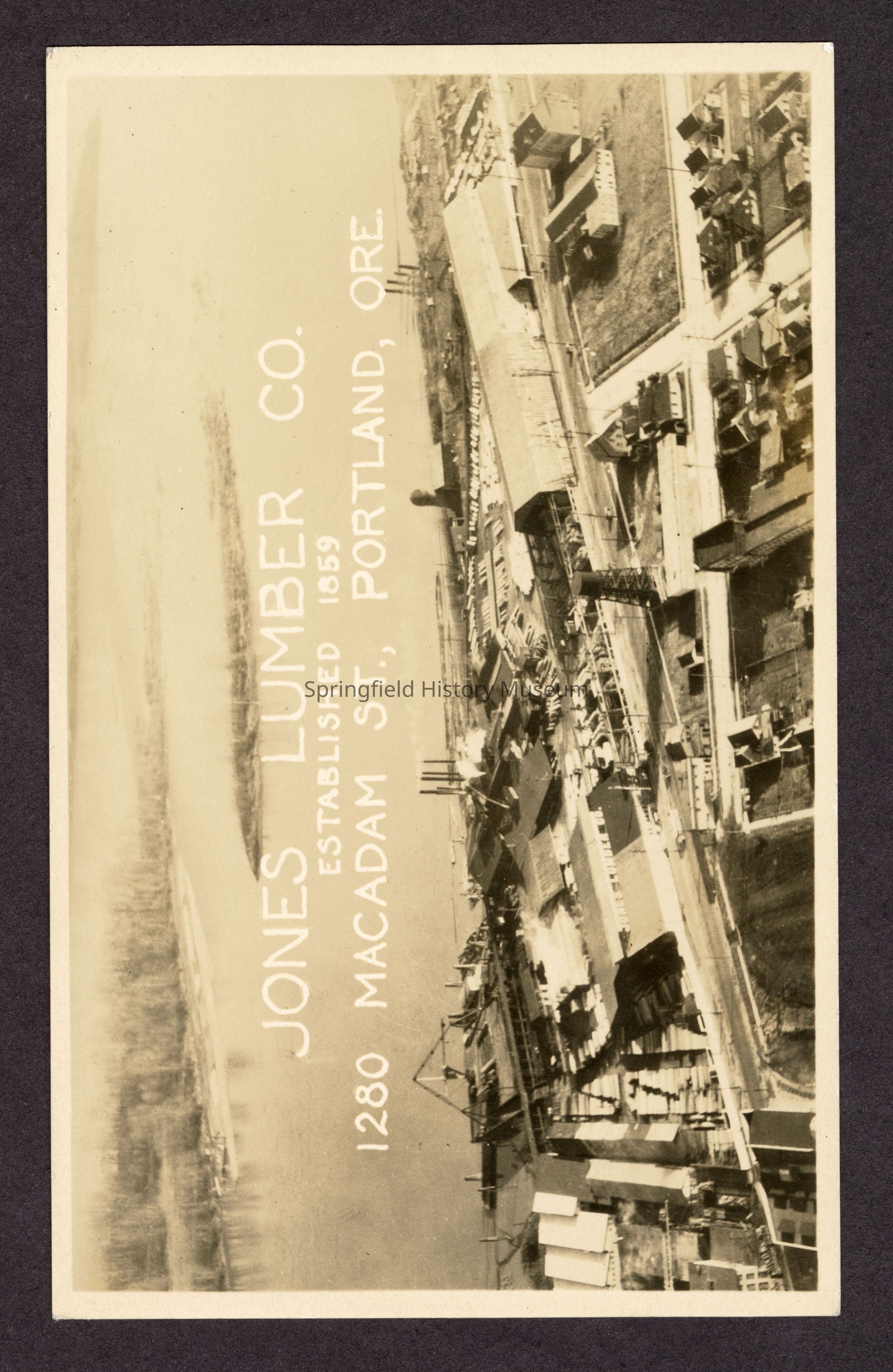 R) Post Card of Jones Lumber Co. Established 1859, 1280 Macadam St. Portland, Oregon.