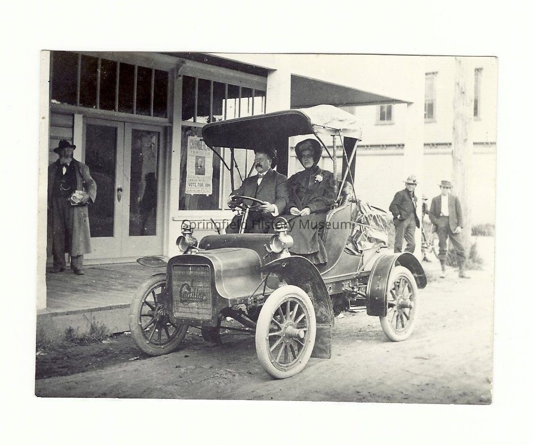 Couple in Cadillac in front of Springfield Hotel on Main Street, 1908Entry/Object ID