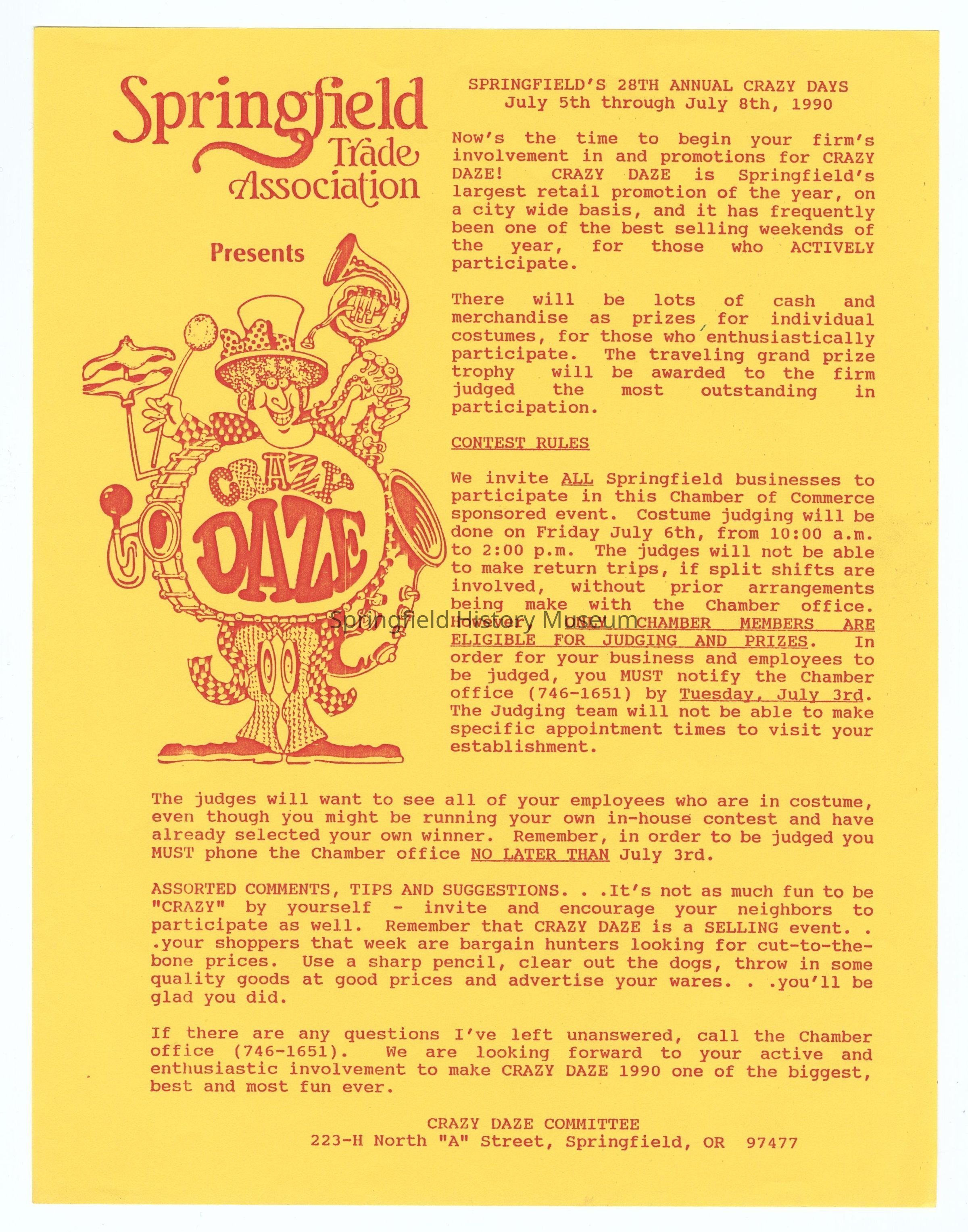 Documents on the 'Crazy Daze' event, by the Springfield Chamber of Commerce, 1987-1990Entry/Object ID