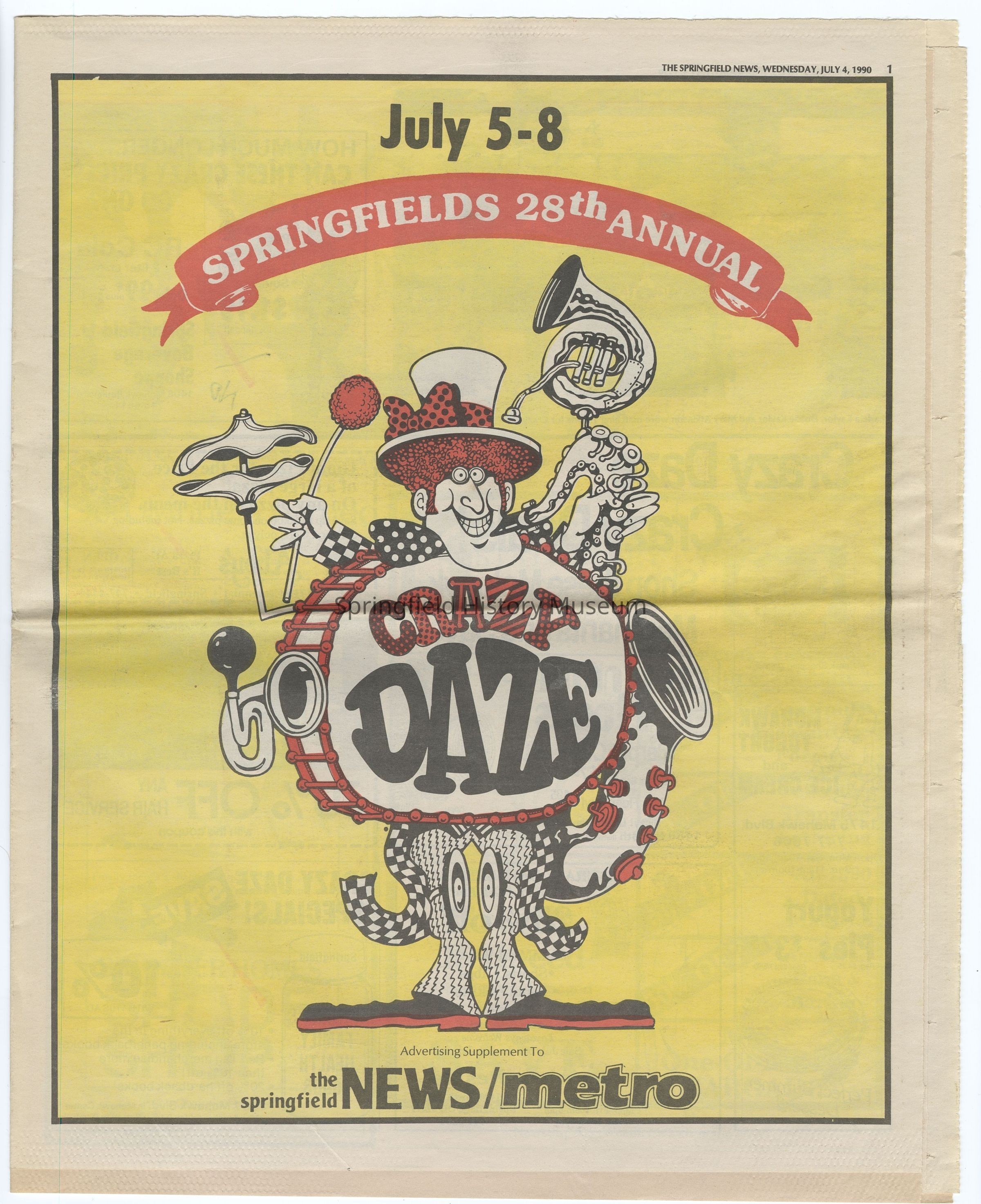 Documents on Crazy Daze, Springfield for 1987, 1989 and 1990. Contains programs and brochure (Springfield News July 4, 1990), poster and a few administrative records and notes.Context