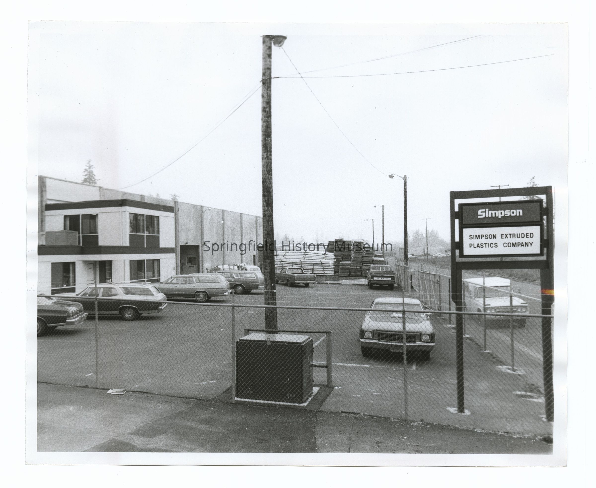Photograph of "Simpson Extruded Plastics Company" building, and site, Springfield, undated, circa 1970Photograph Details