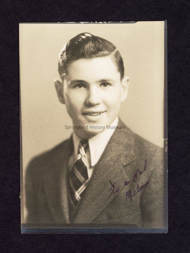 Black and white photograph of Melvin Cunningham. Handwritten on front is "To a pal, Melvin". Handwritten on back is "39 Melvin Cunningham". Cunningham was a Senior at Springfield High School in 1939.