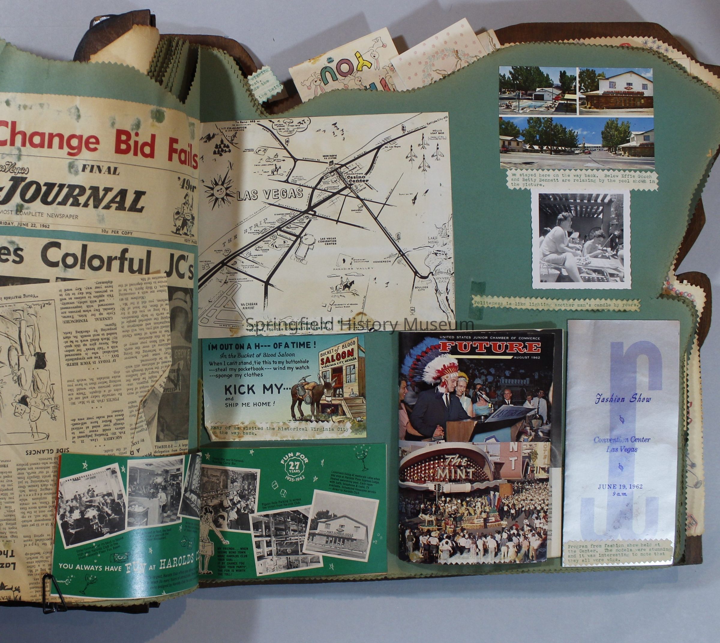 Scrapbook of Springfield, Oregon Jaycee-ettes, Joan Harman Possion, was President at the time of events.1962-1963, scrapbook cover is of wood with brass color hinges. The scrapbook contains newspaper articles, photo's, and cards.