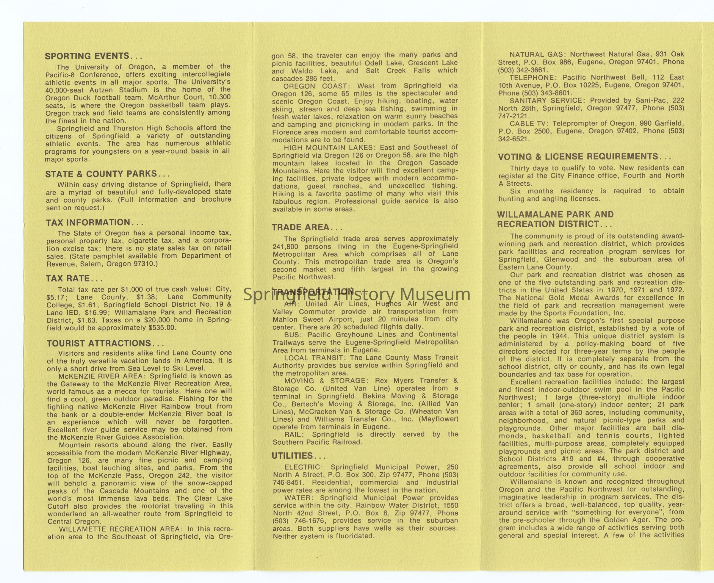 Informational brochure about Springfield, 1976-1977Entry/Object ID