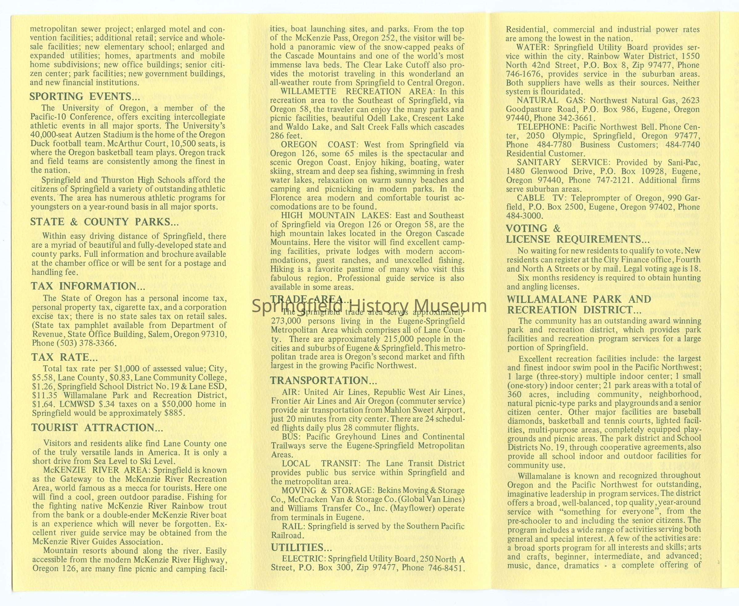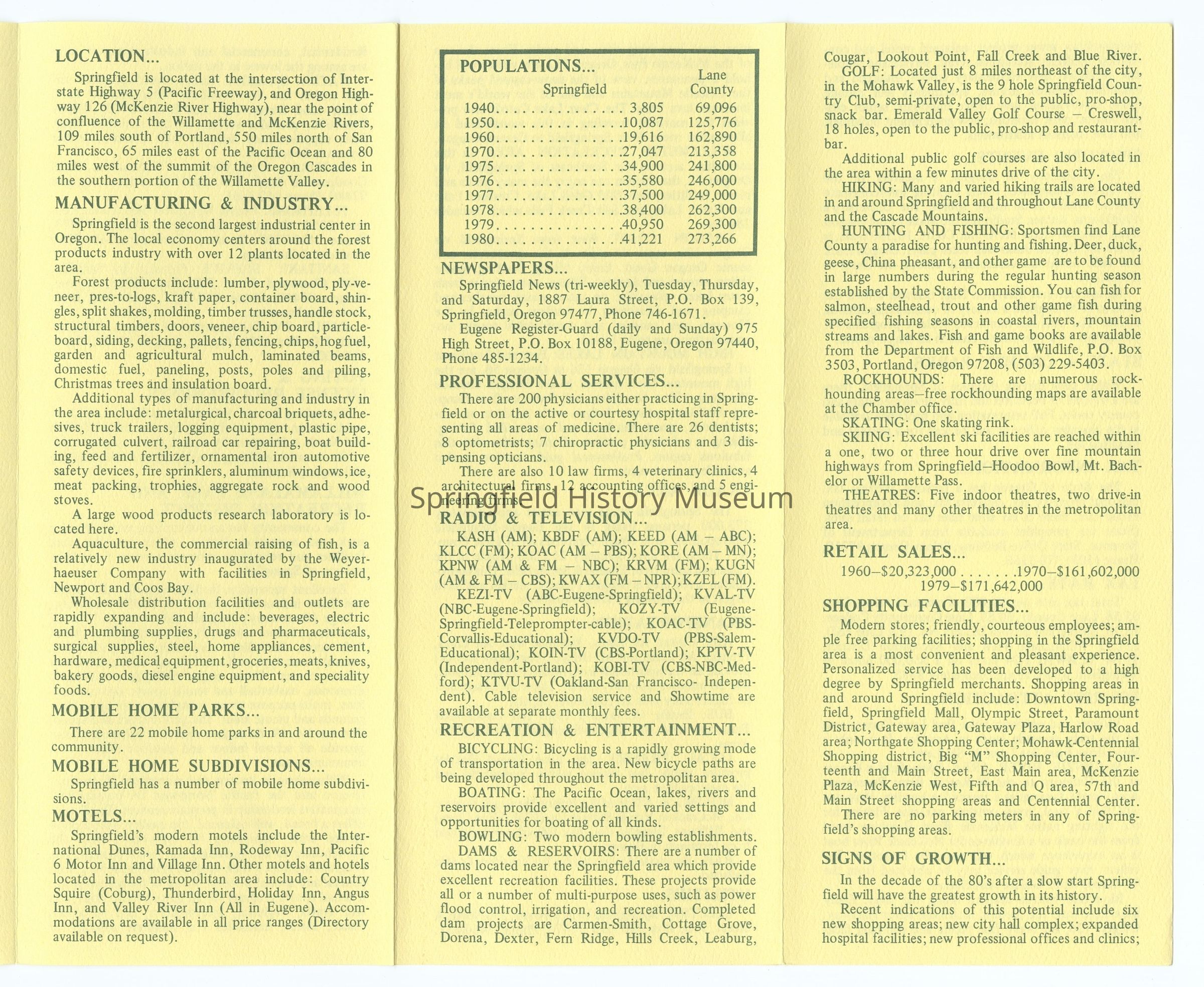 Informational brochure about Springfield, 1981-1982Entry/Object ID