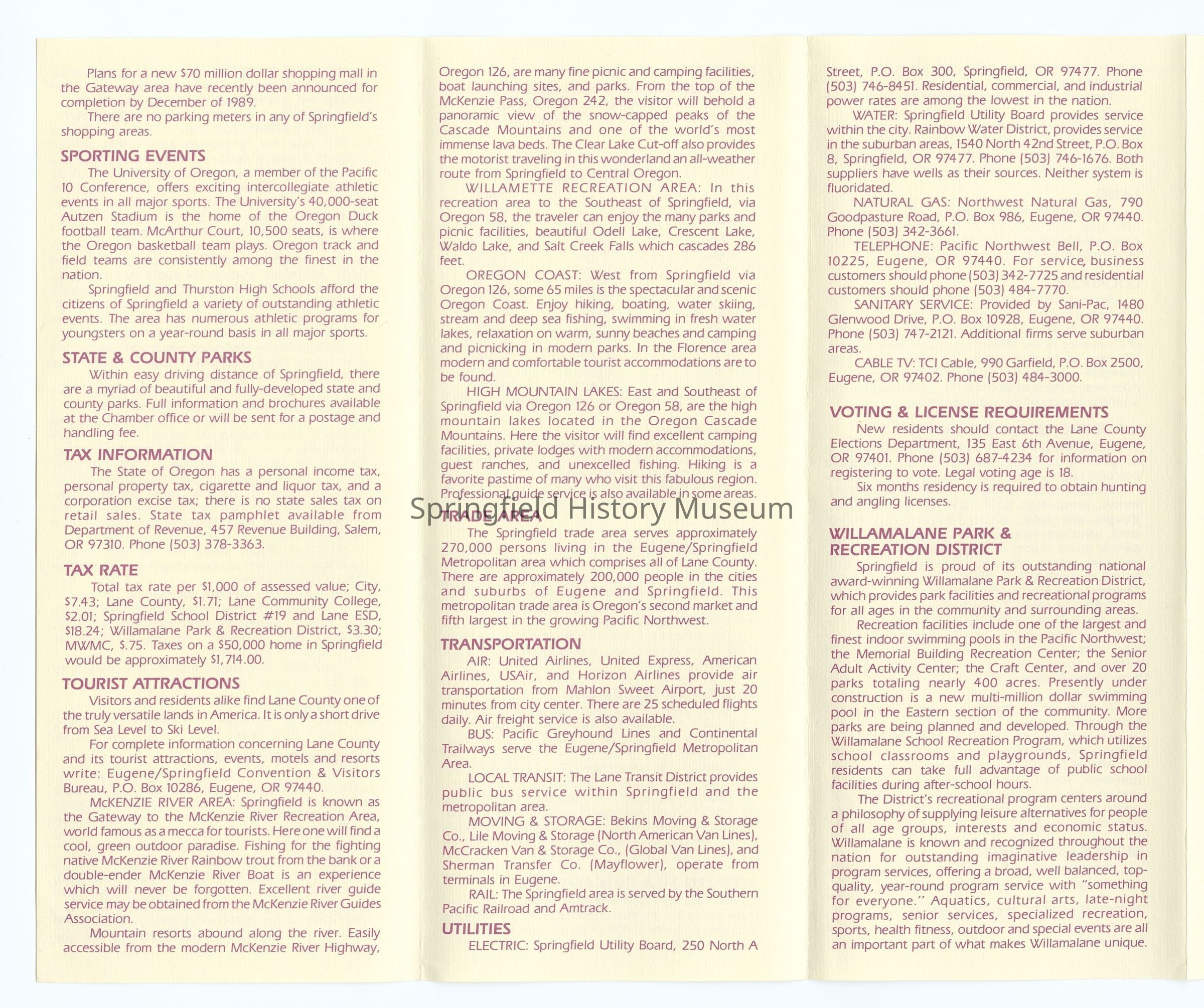 Informational brochure about Springfield, 1988-1990Entry/Object ID