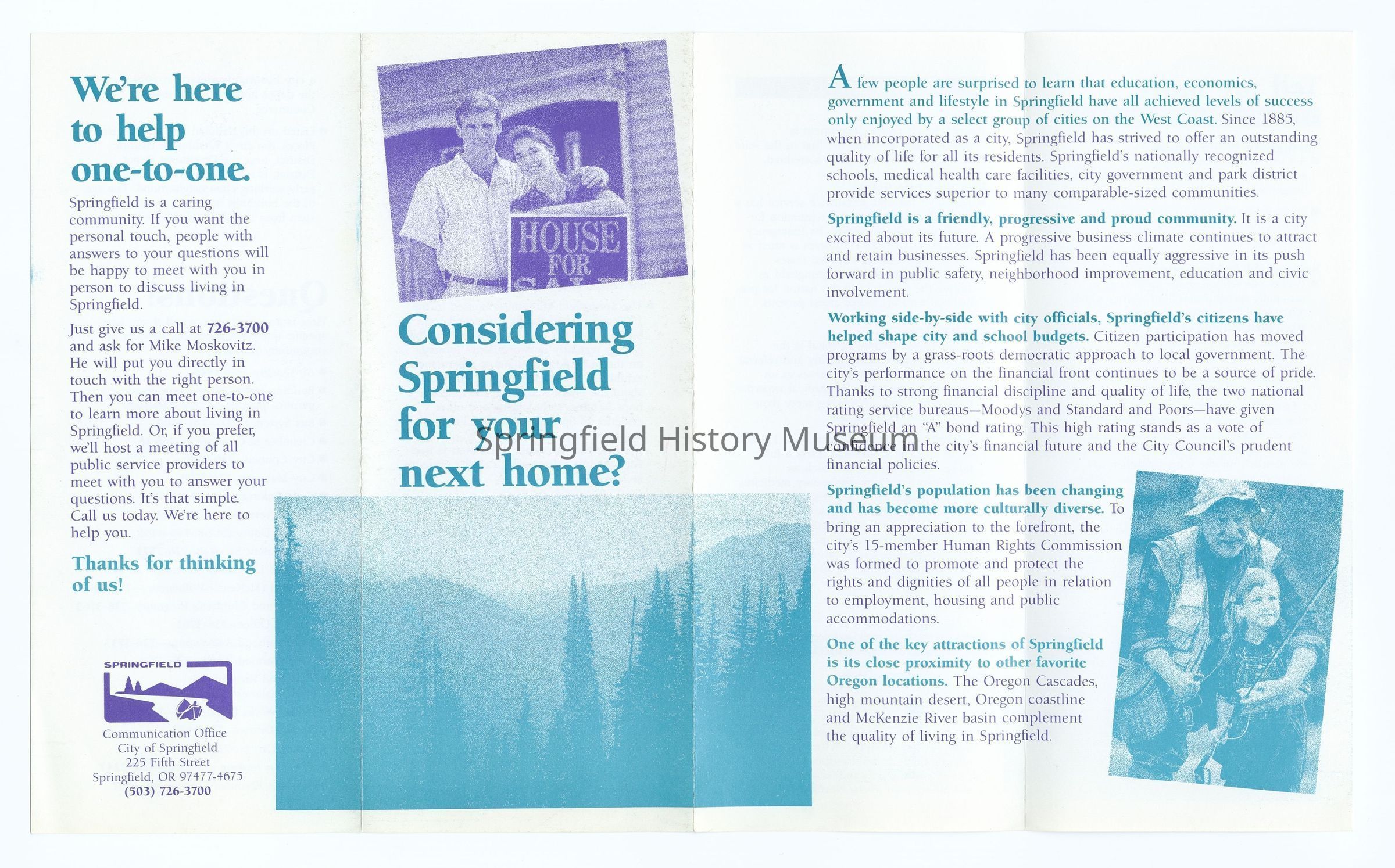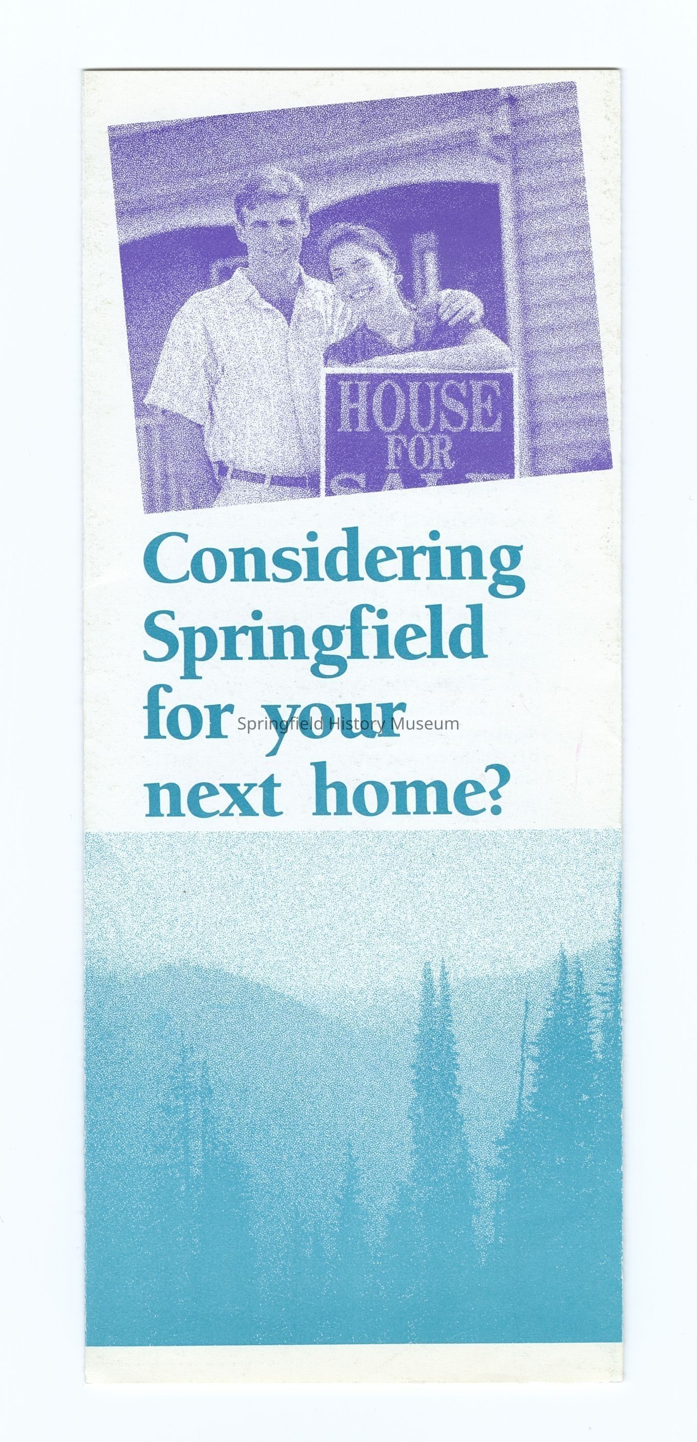 4-panel folded brochure about Springfield titled "Considering Springfield for your next home?", undated, circa 2000.Context