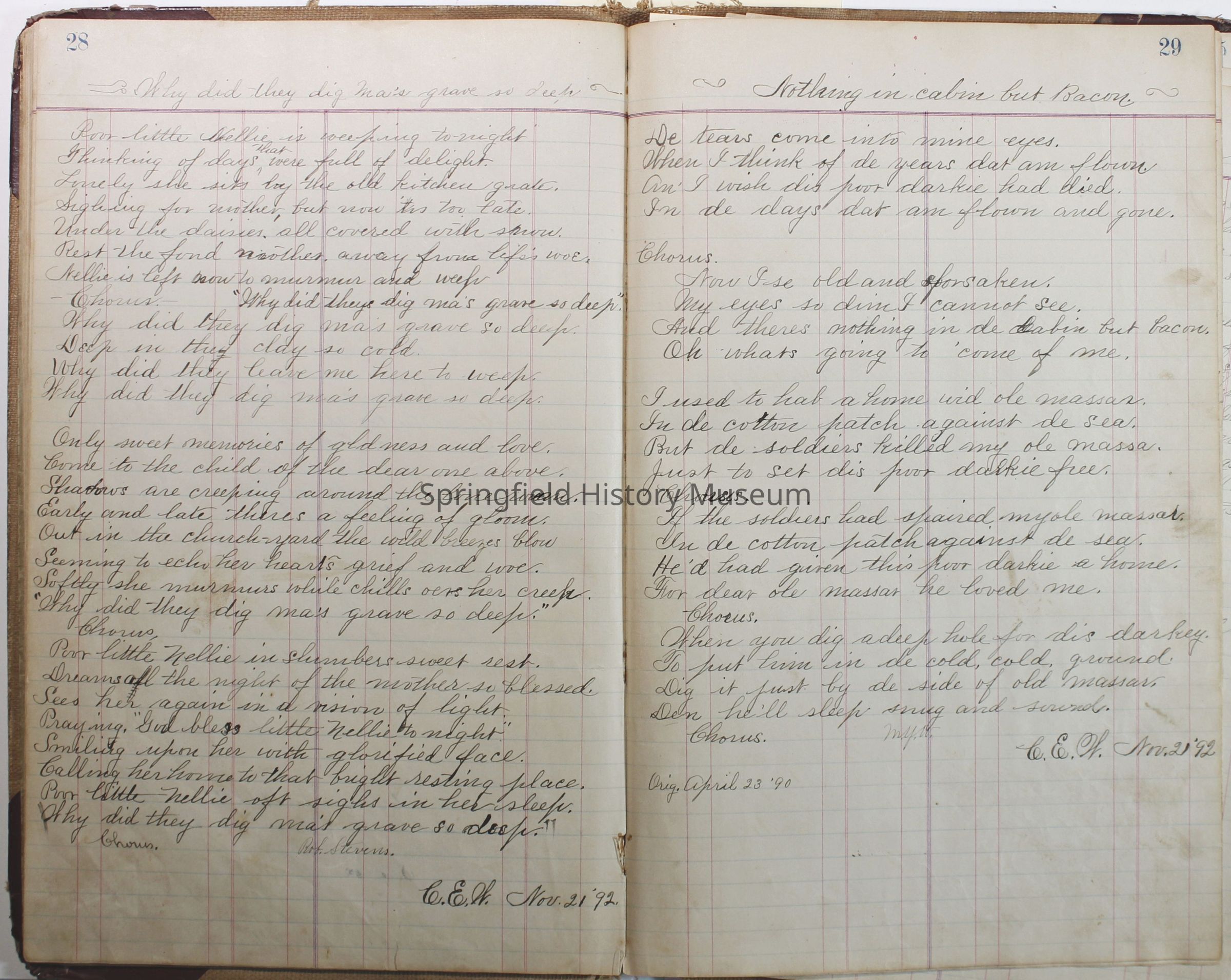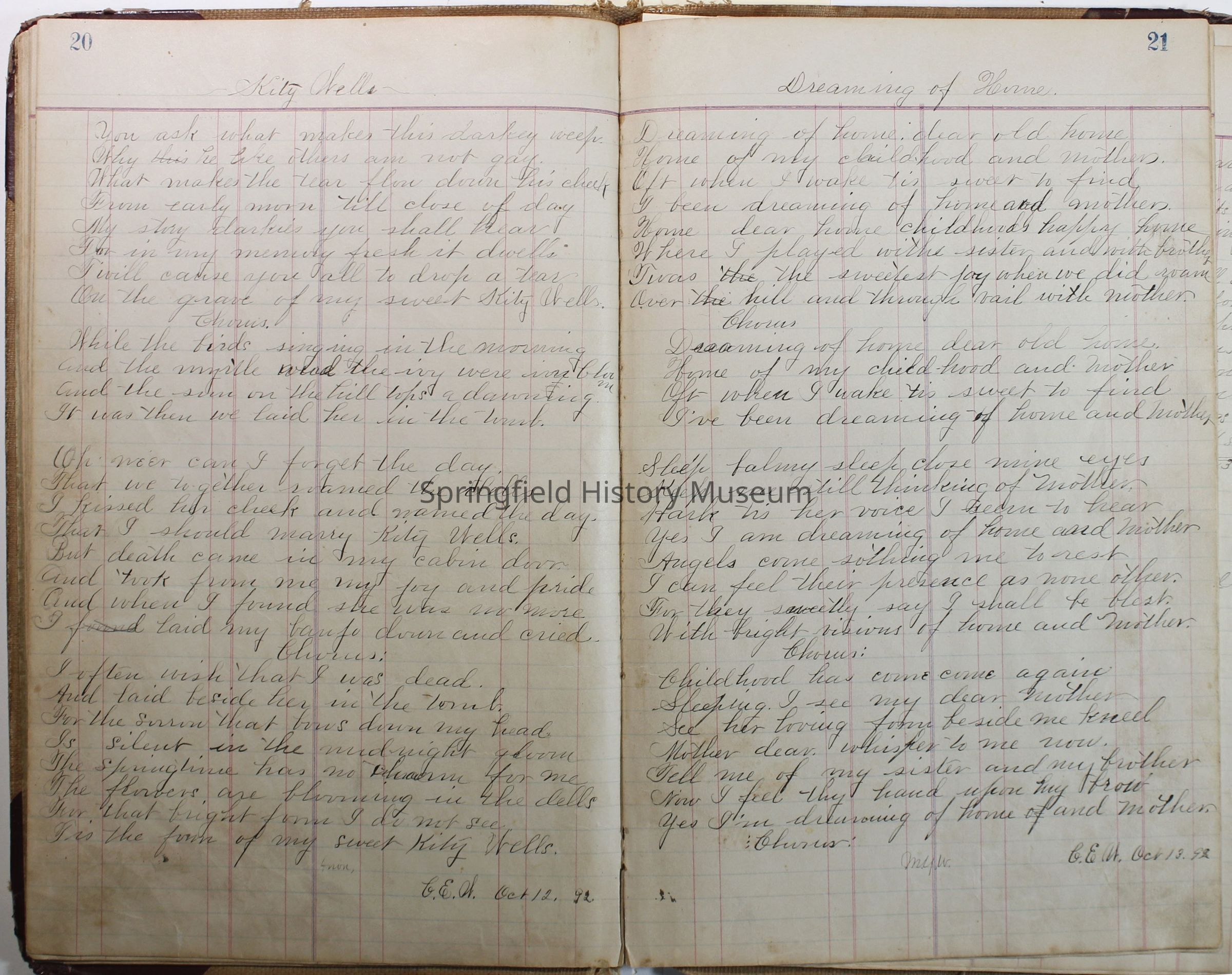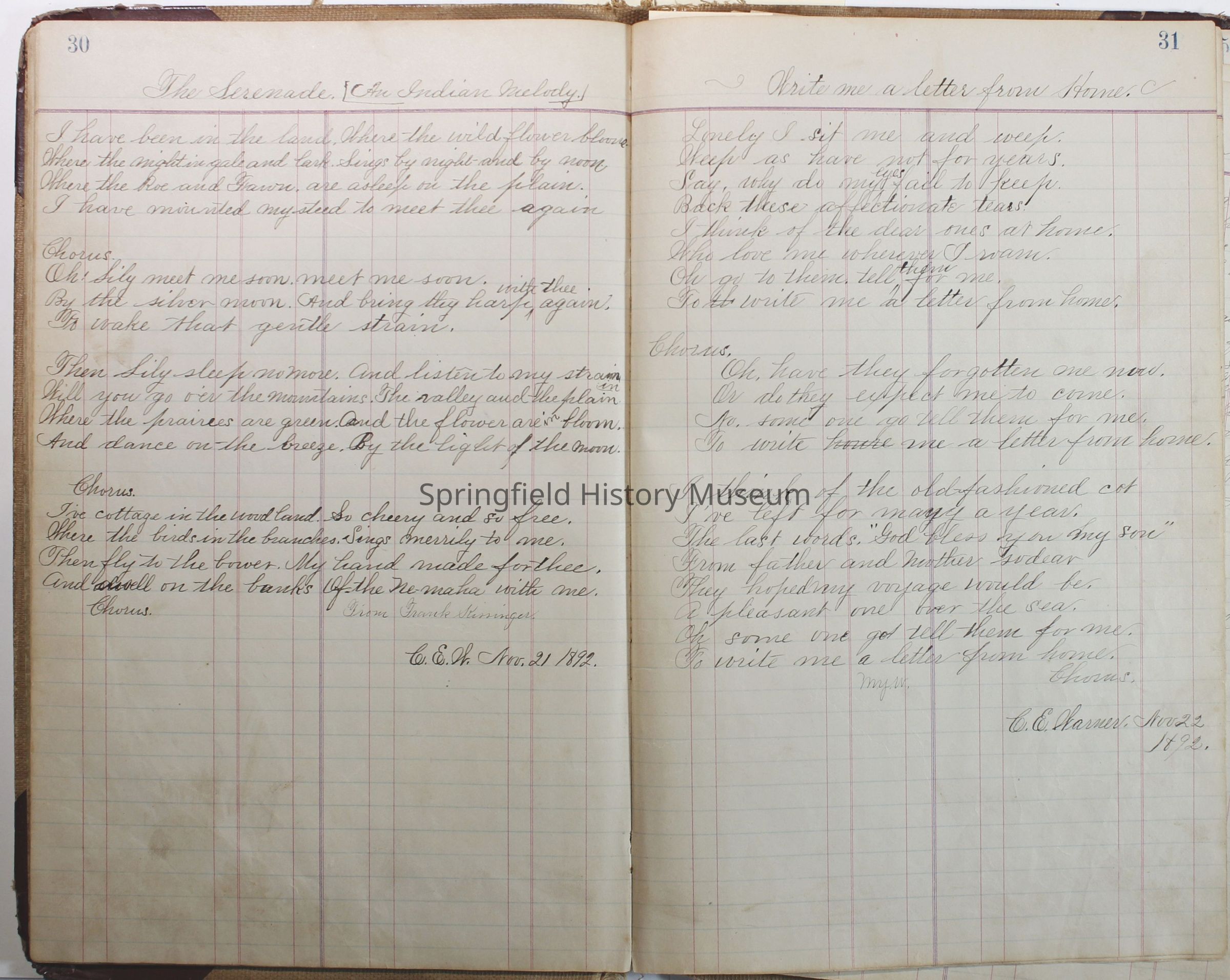Journal of C.E. Warner, 1891-1896Entry/Object ID
