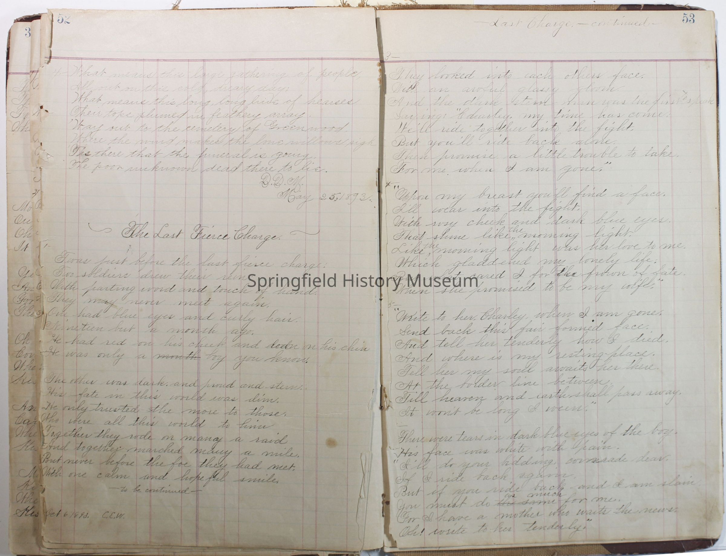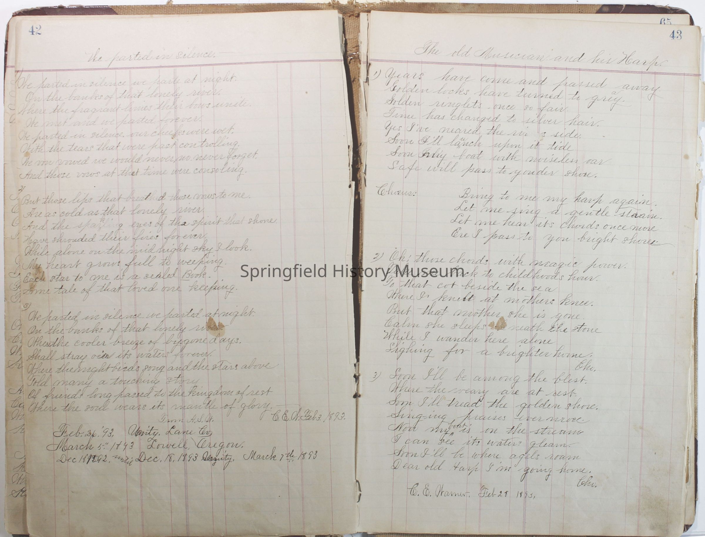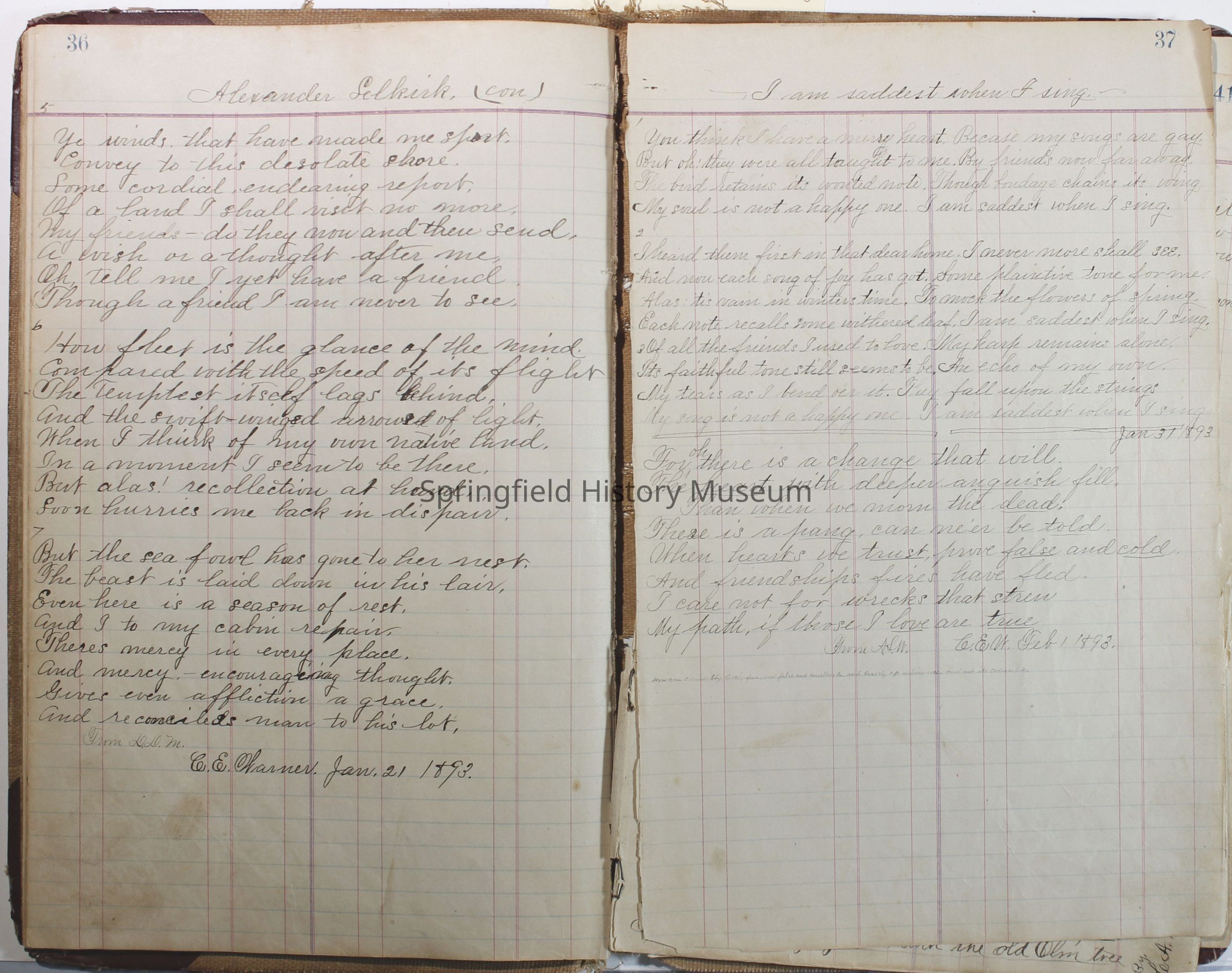 Journal of C.E. Warner, January 1, 1891 to 1896. Contains journal, poems etc.