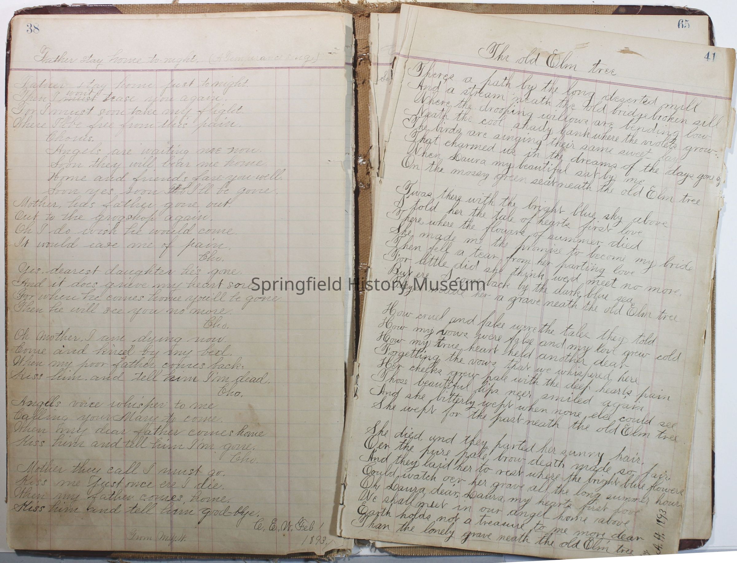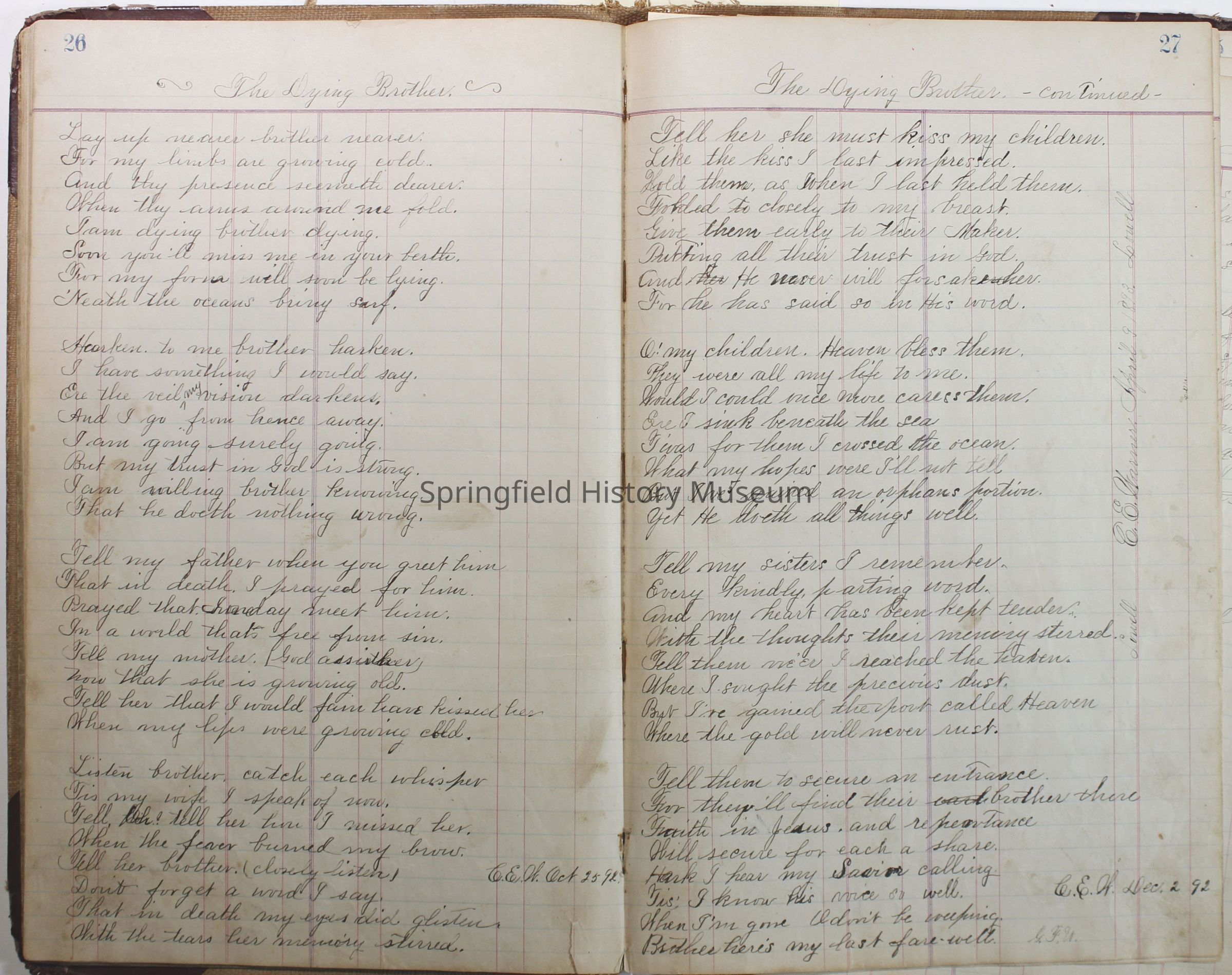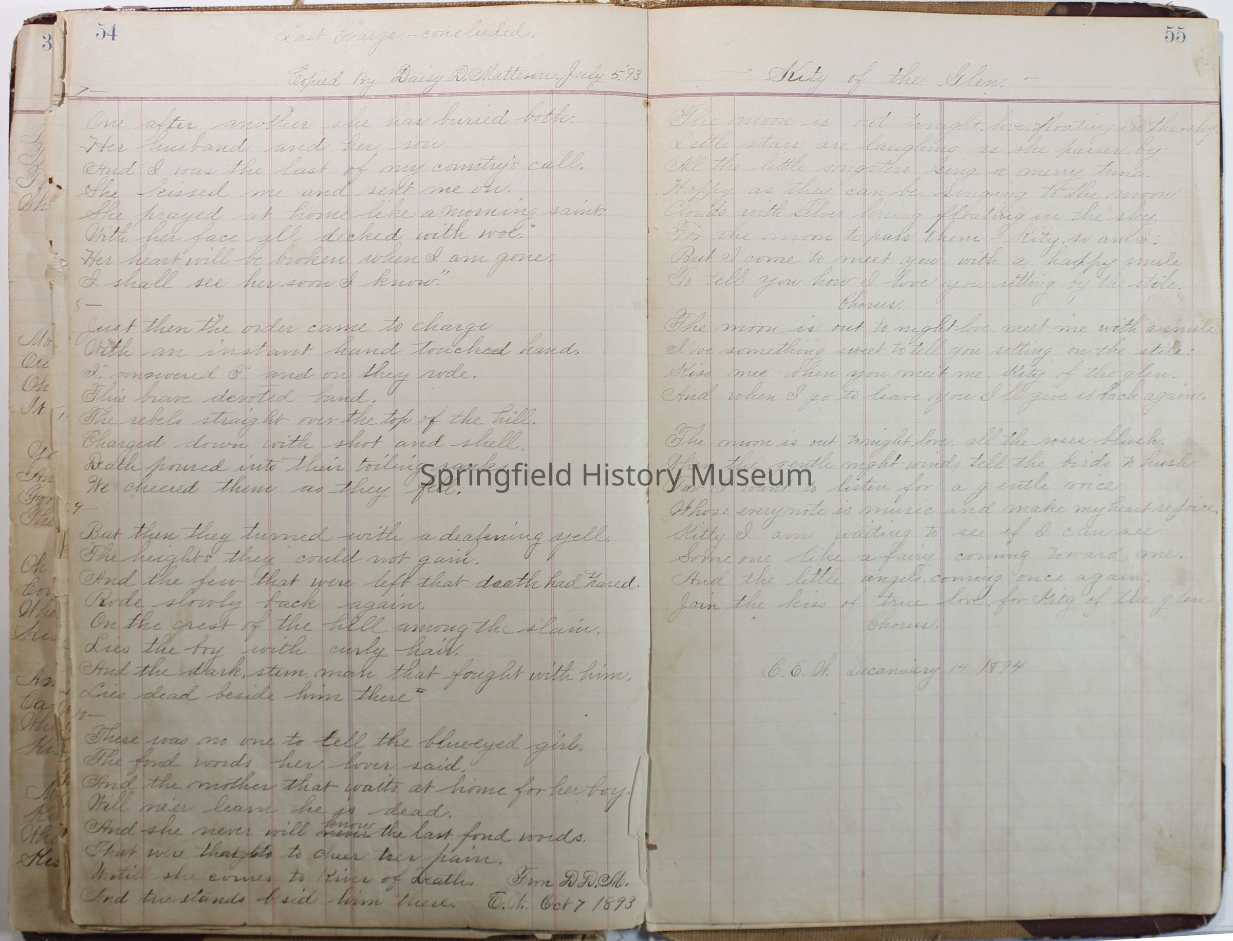 Journal of C.E. Warner, January 1, 1891 to 1896. Contains journal, poems etc.