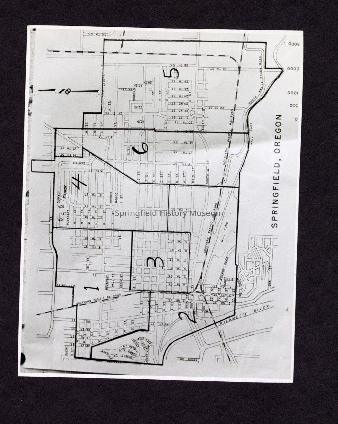 B&W Photo of a map of Springfield, Oregon up to 28th Street.Collection