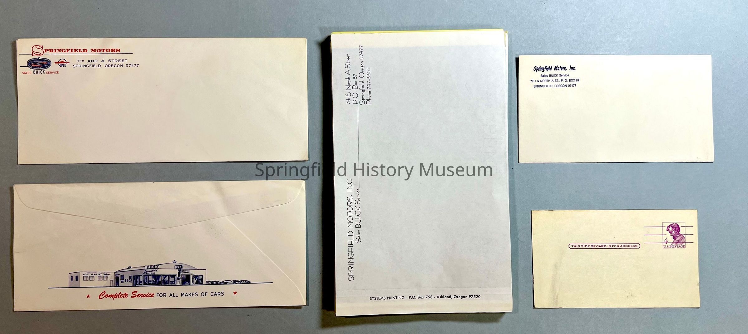 New Old Stock Business Stationery and Envelopes, Springfield MotorsEntry/Object ID