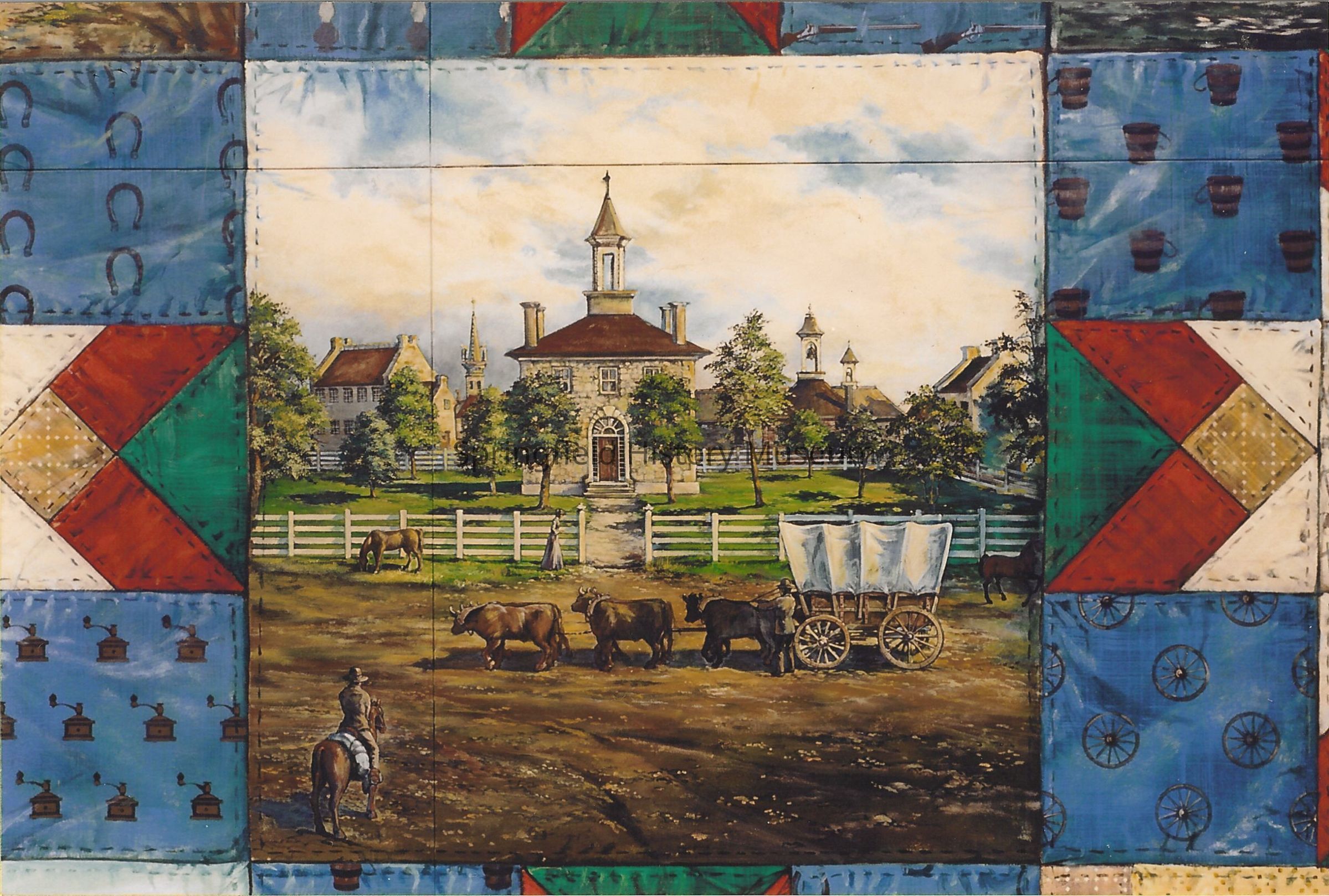 Oregon Trail mural detail of Courthouse Square, Independance Missouri. Painted by Anne Woodruff Murray in 1993 - 1994.