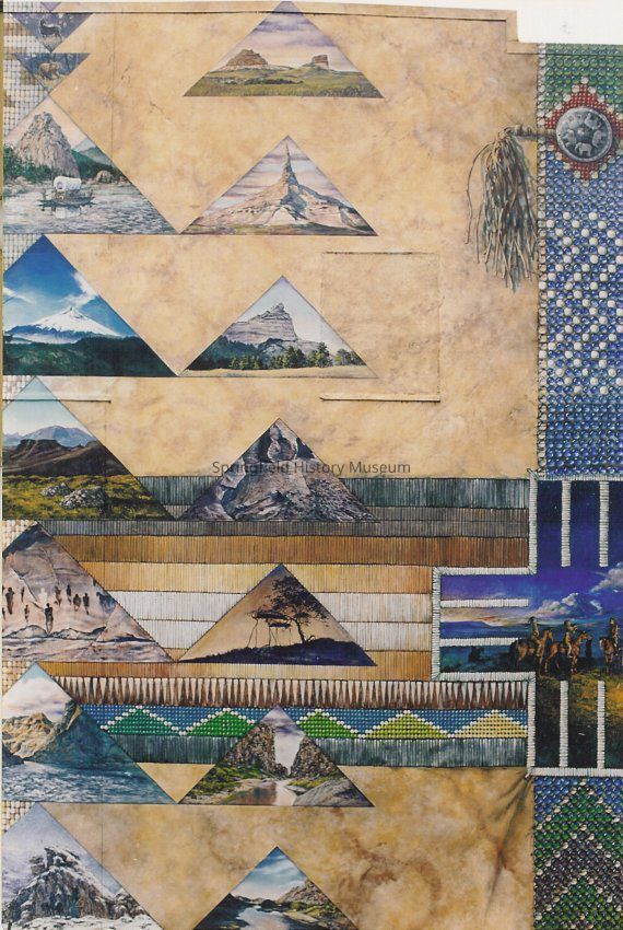 Oregon Trail mural detail showing triangular pieces. Painted by Anne Woodruff Murray in 1993 - 1994.
