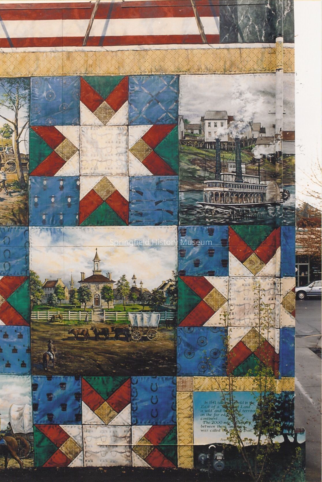 Oregon Trail mural showing part of the quilt. Painted by Anne Woodruff Murray in 1993 - 1994.
