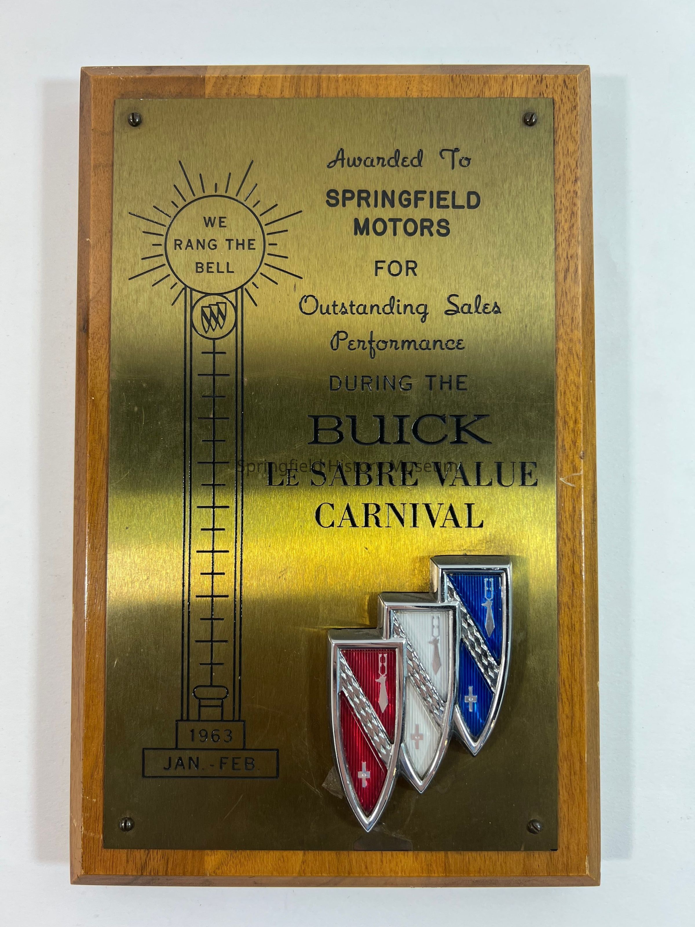 "We rang the bell" Award for "Outstanding Sales Performance" in 1963 to Springfield Motors, during the Buick LeSabre Value CarnivalCollection