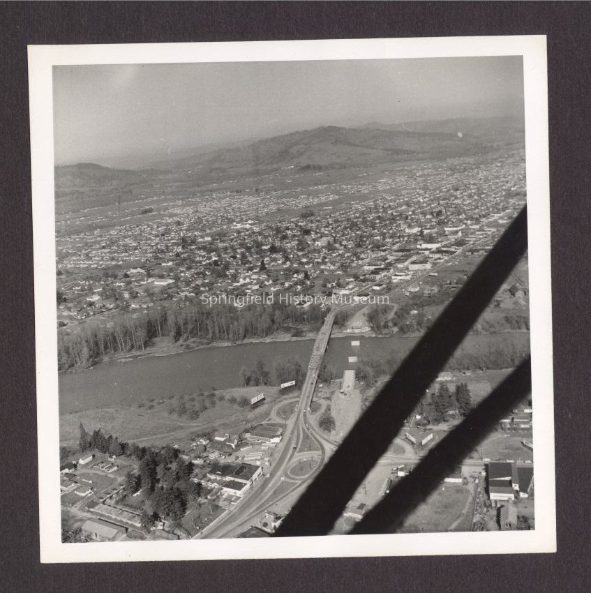Photograph, Aerial of Springfield, Oregon's new bridge. Date unknown.Entry/Object ID