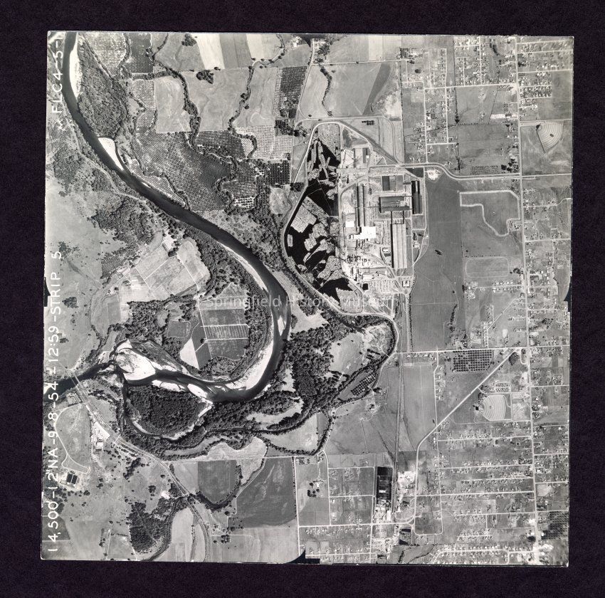 Aerial photograph of Weyerhaeuser Plant, Springfield, 1959. 14,500-12" NA-9-8-54-12:59- Strip 5.Photograph Details