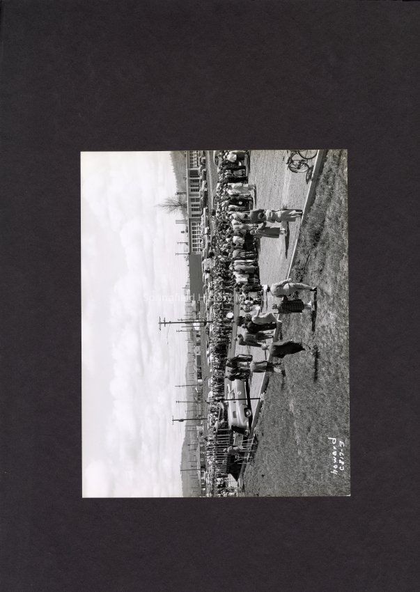 B&W Photo of large group of people with a band.Collection