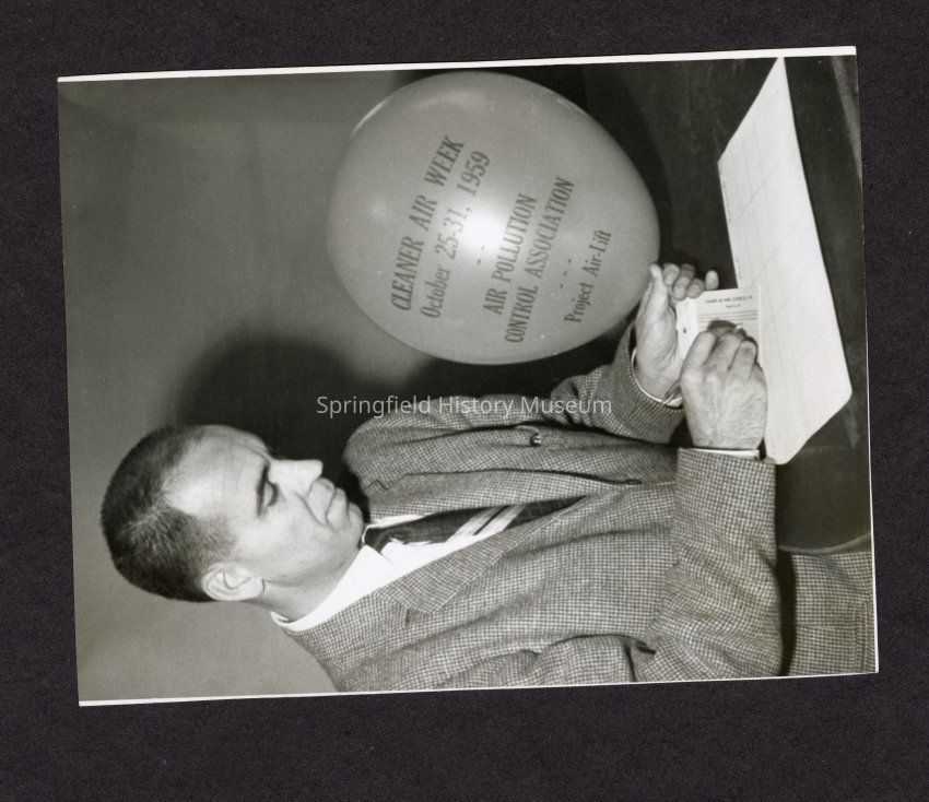 Photograph, man with balloon, "Cleaner Air Week, October 25-31, 1959, Air Pollution Control Association, Project Airlift", 1959Entry/Object ID