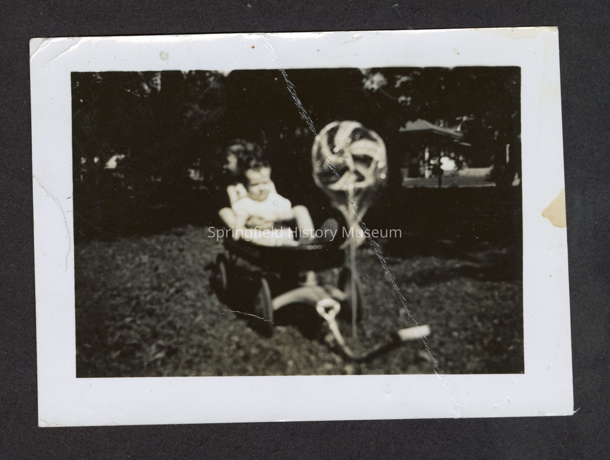 Photograph of a baby in a Mercury wagon, circa 1950