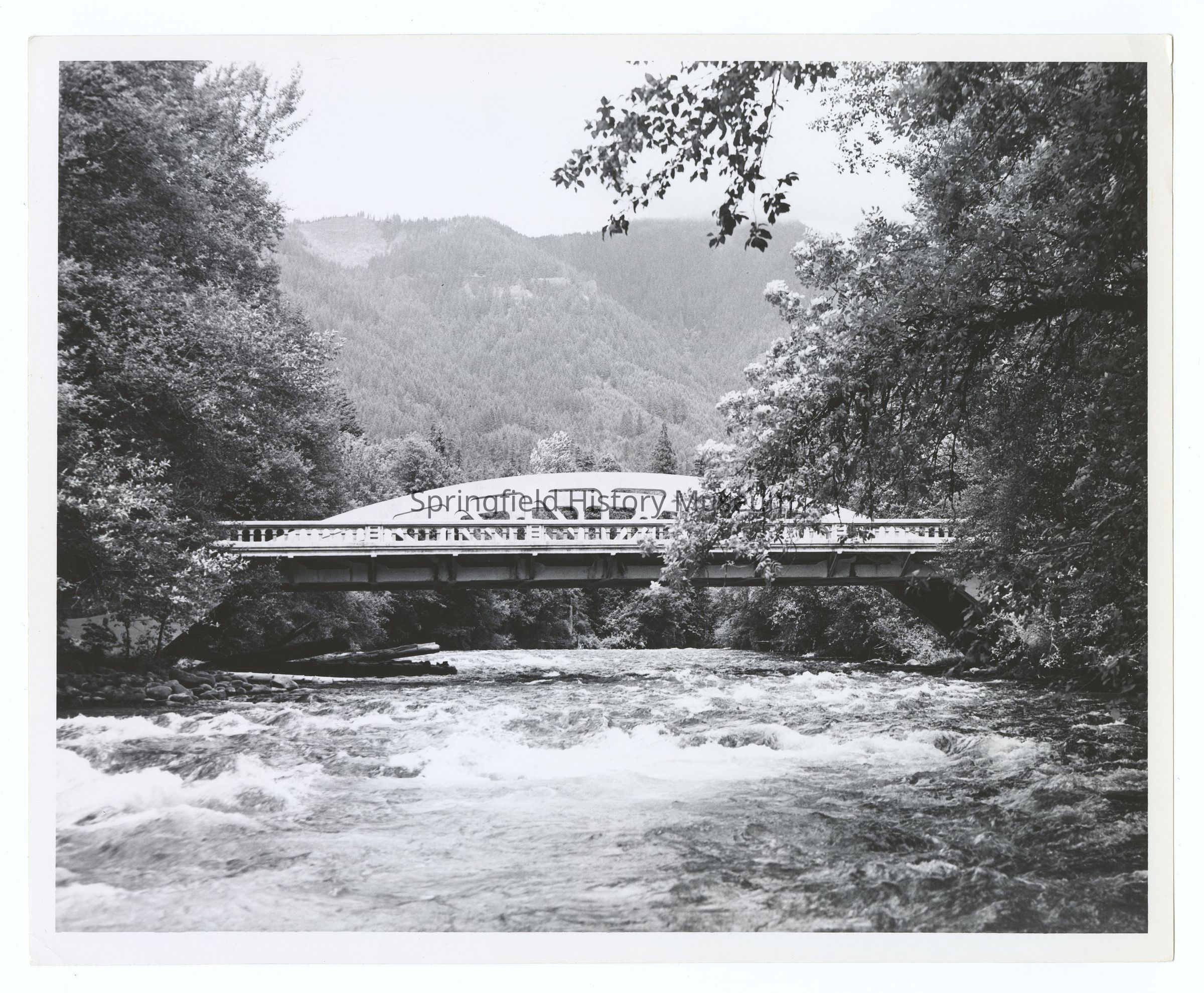Photograph of a bridge in McKenzie Bridge (town), Oregon Cascades, circa 1969