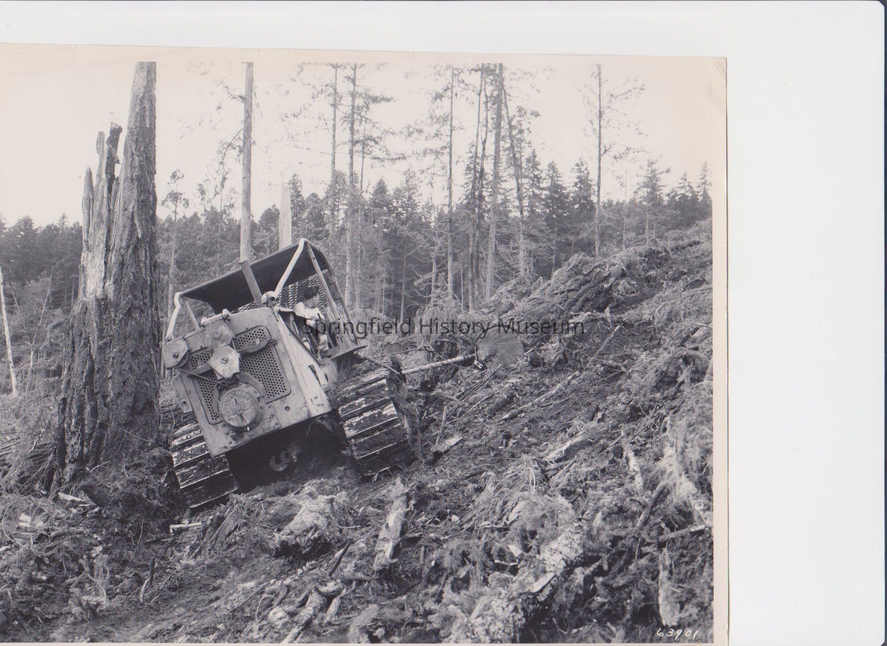 Photograph of a caterpillar skidding logs for Fischer Lumber Company, Marcola, OregonEntry/Object ID