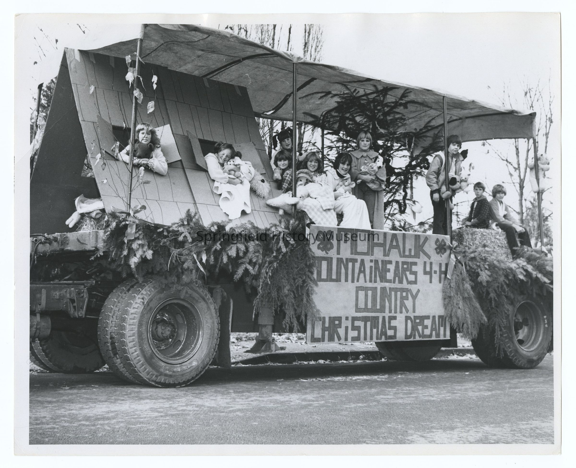 Photograph of a Christmas parade, Springfield, circa 1980, undated. "Mohawk Mountainears 4-H".Photograph Details