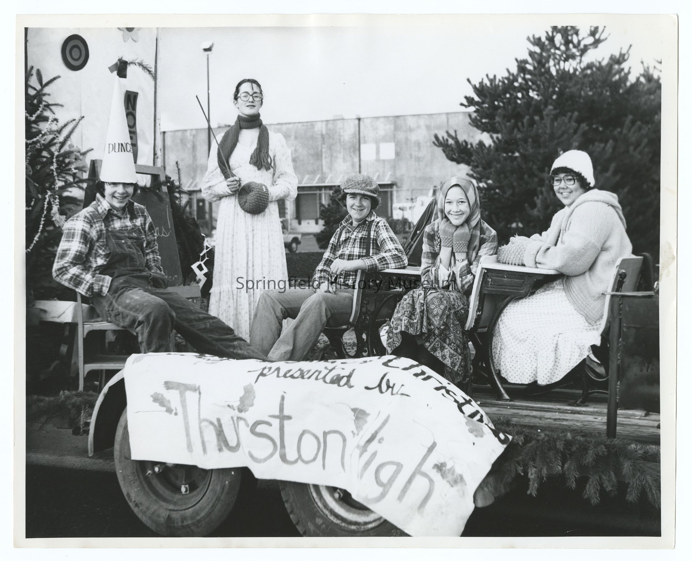 Photograph of a Christmas parade, Springfield, circa 1980, undated. Thurston High School.Photograph Details