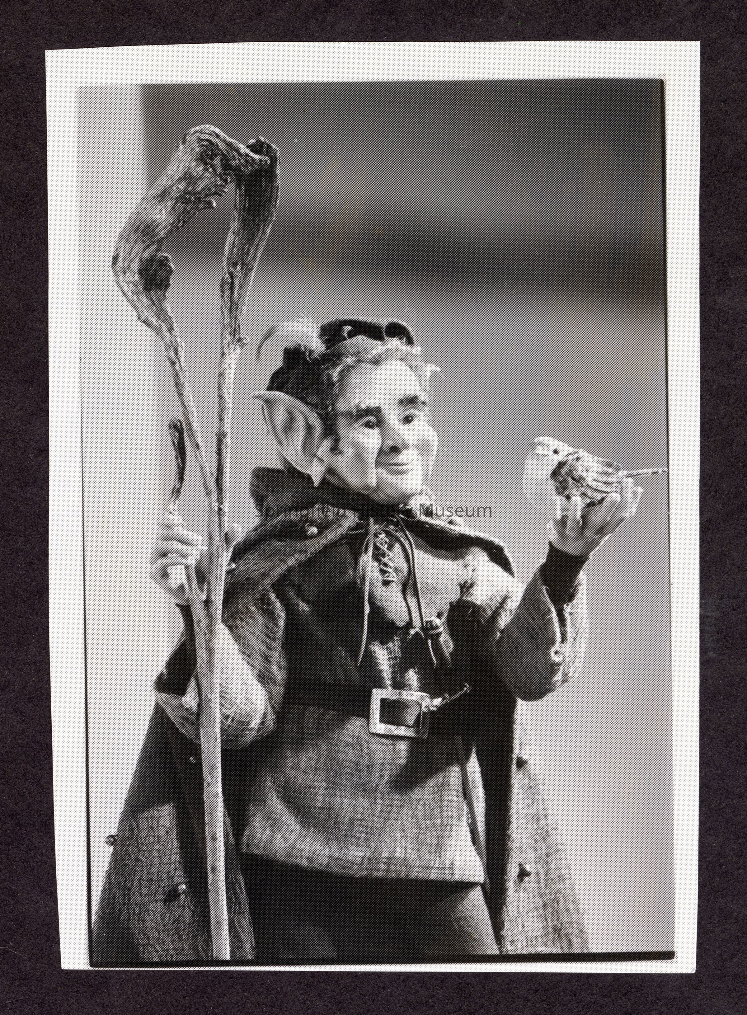 Photograph of a Elf Doll holding a bird from doll exhibit, 1995Entry/Object ID