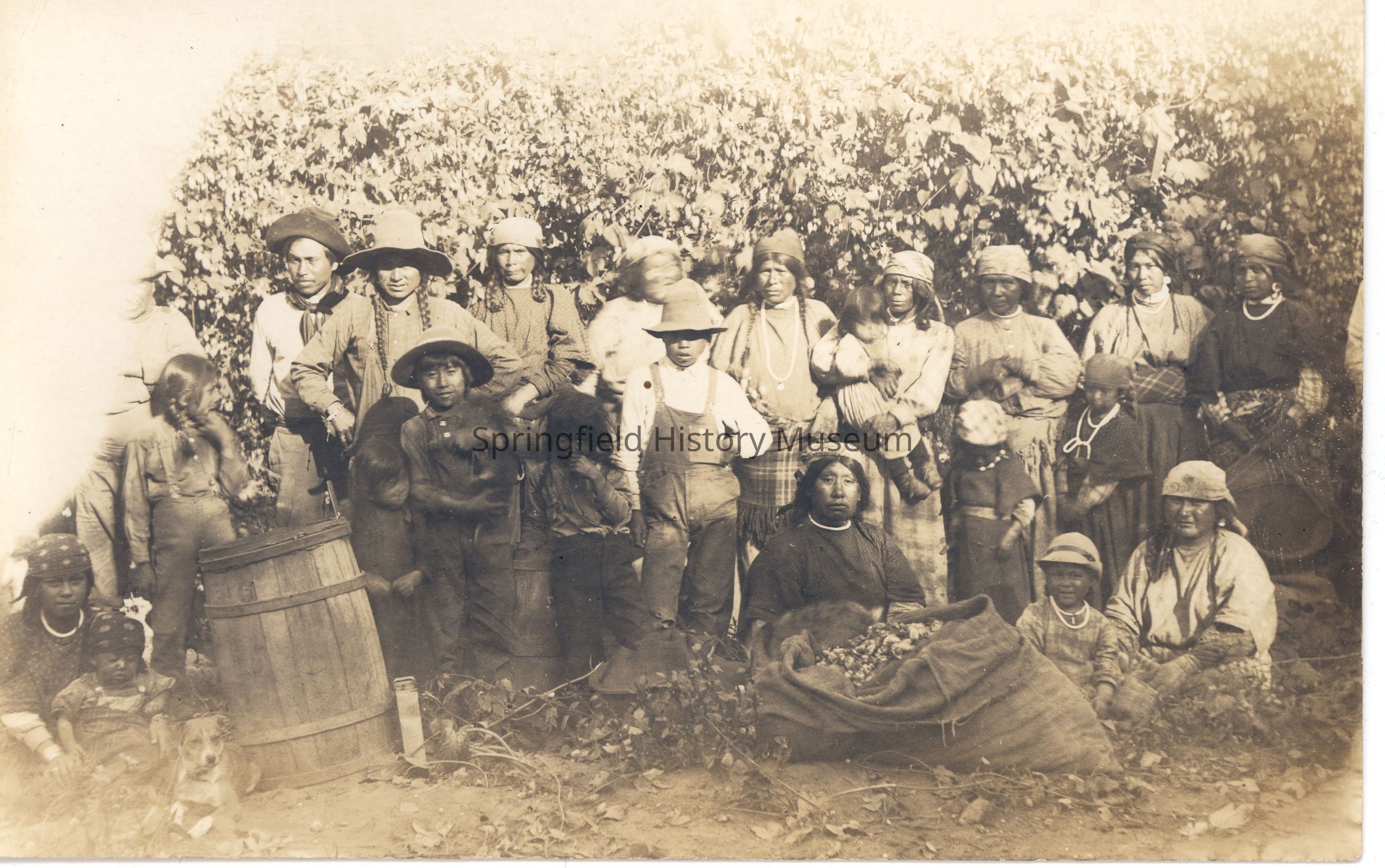 Photograph of a group of Native American workers in a hop field, 1913Entry/Object ID
