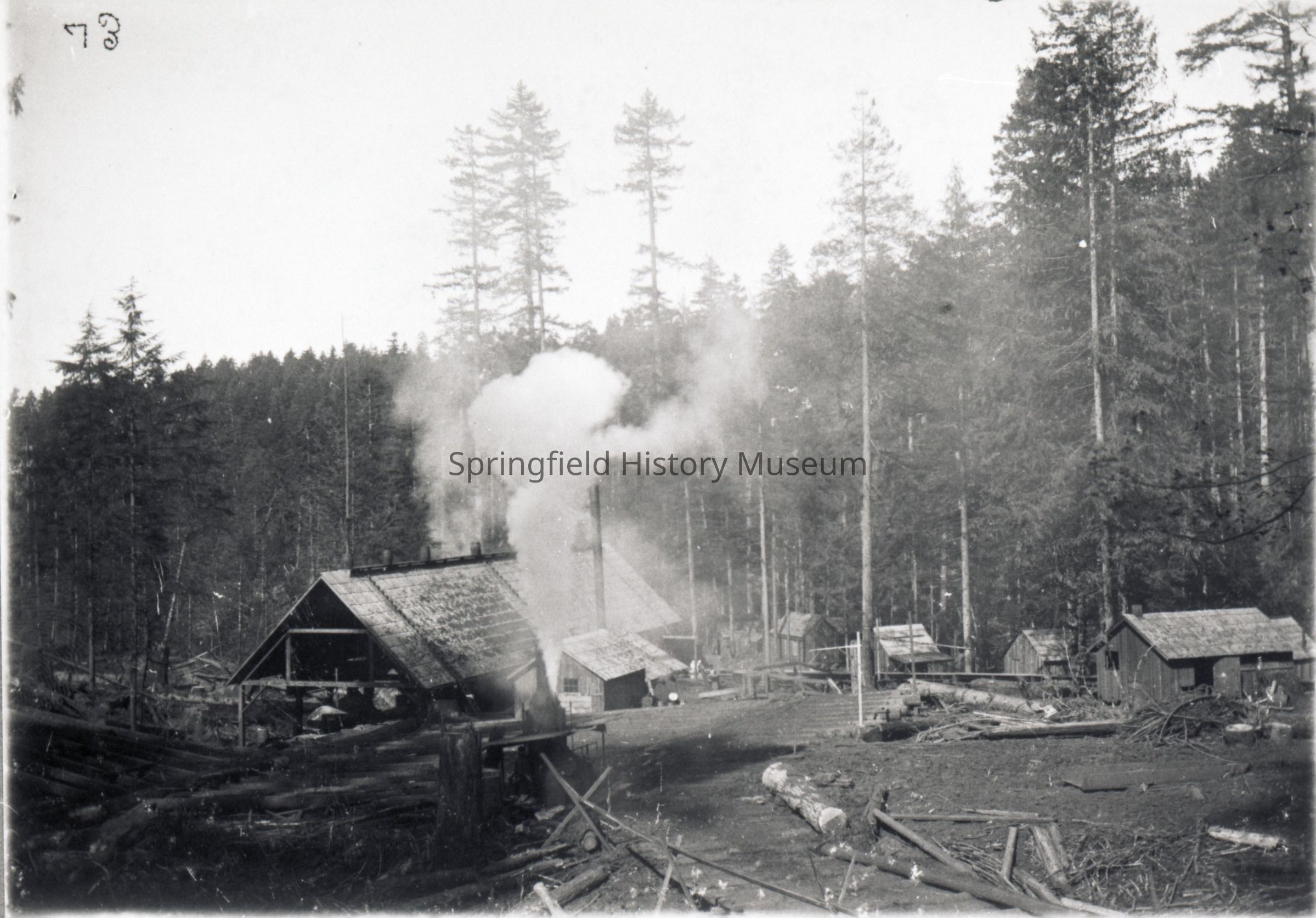 Mill at Saginaw, Oregon circa 1900. Number 73 in top left corner. Photocopy and negative.Photograph Details