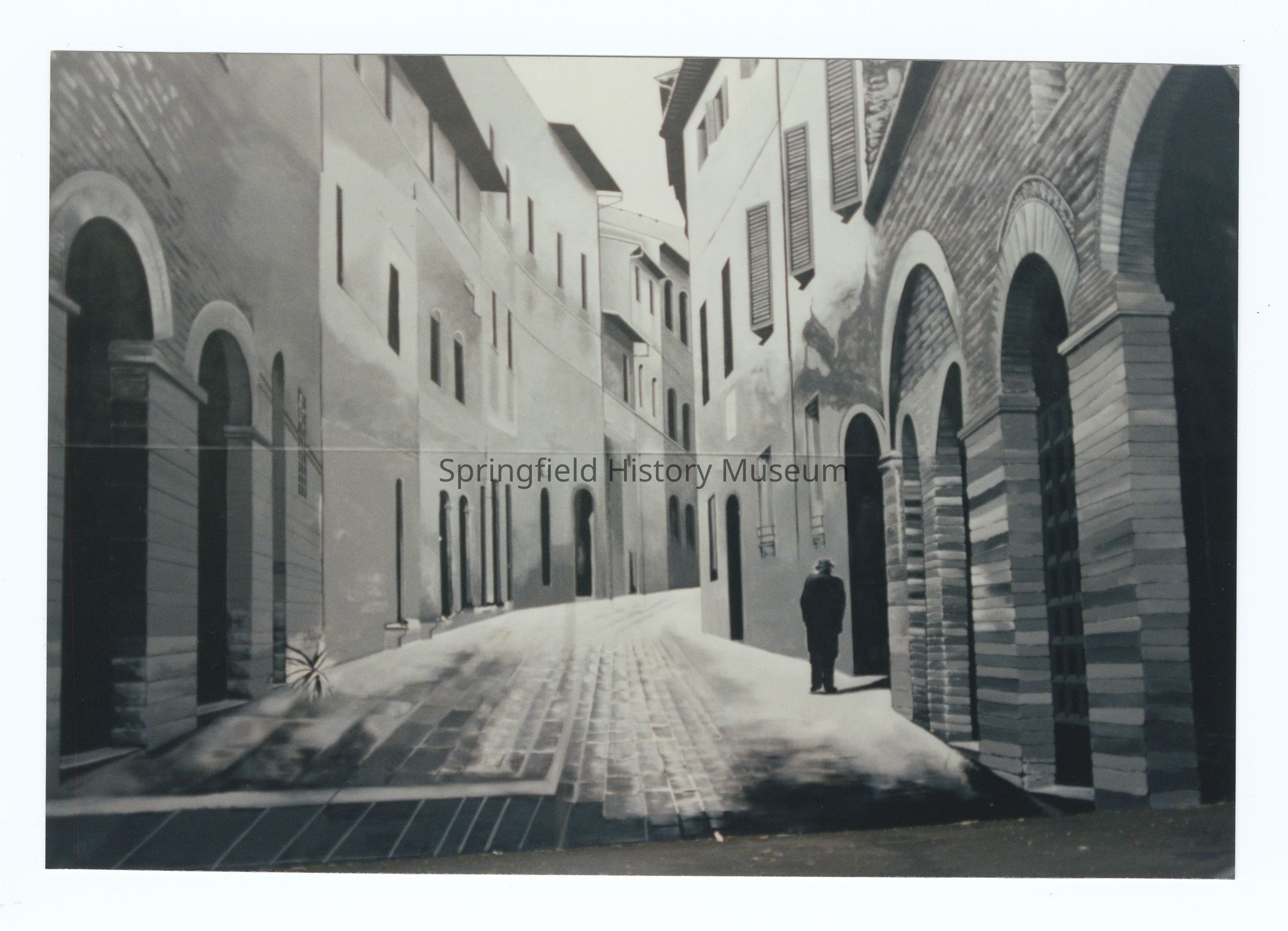 Photograph of a black and white mural, near Kohnen Larson and Co, Springfield, 1992Photograph Details