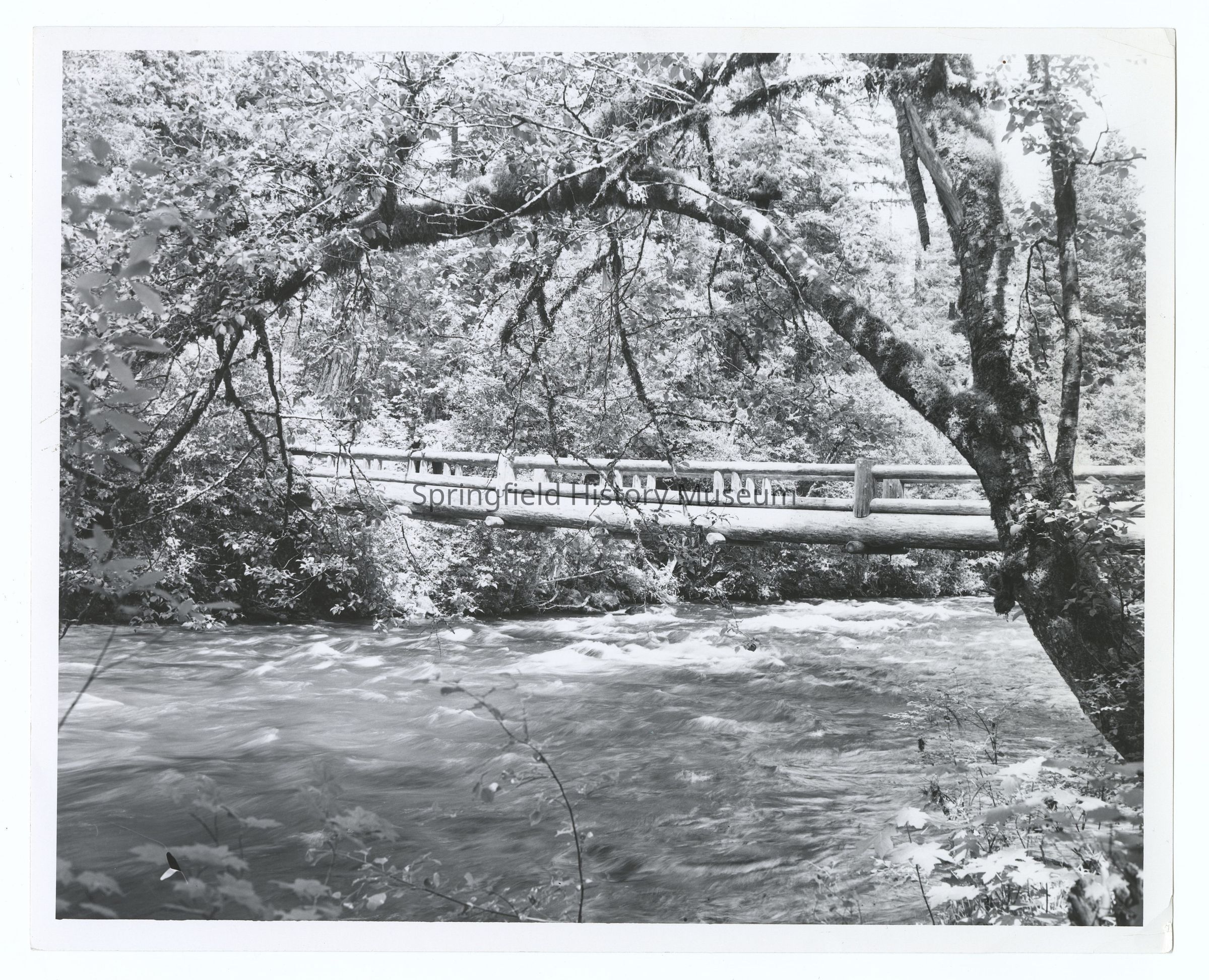 Photograph of a rustic bridge over the McKenzie River, Willamette National Forest, Oregon, circa 1969Entry/Object ID