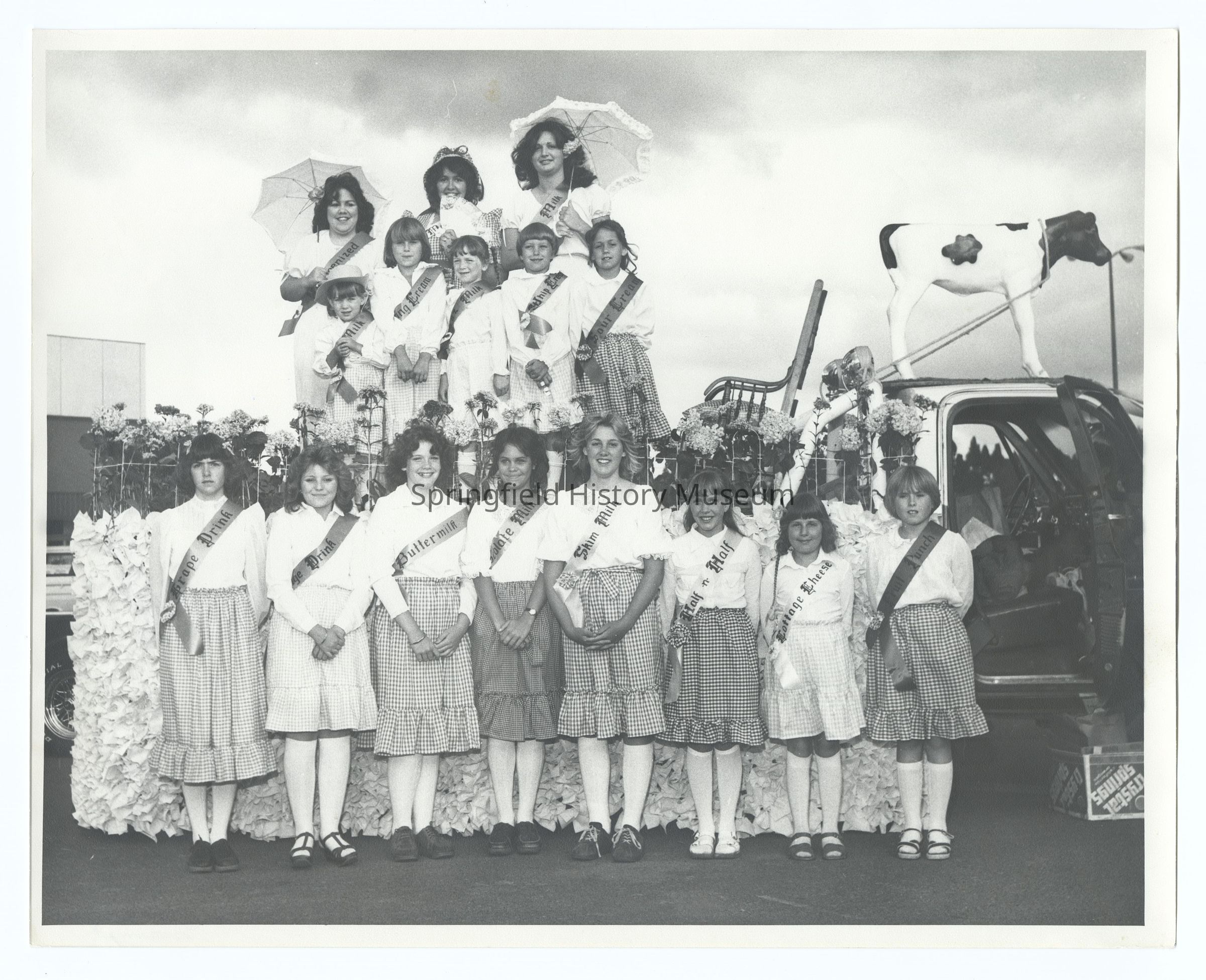 Photograph of a Summer Parade, Springfield, circa 1980, undated. Dairy themed pageant.Photograph Details