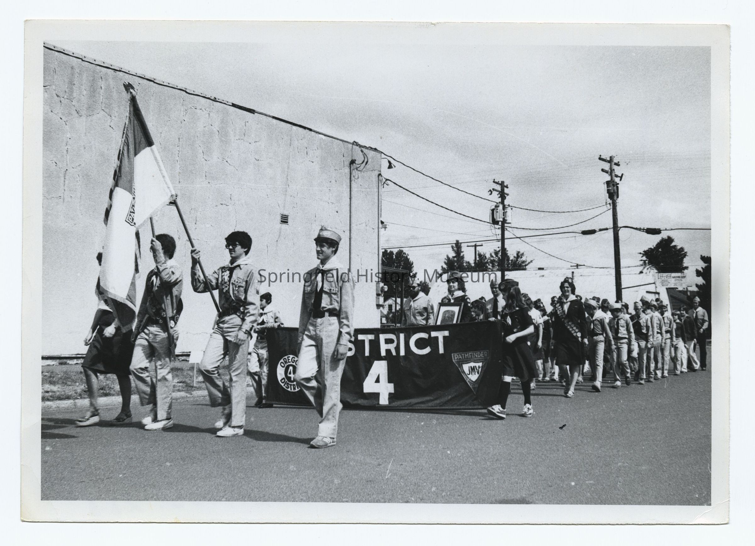 Photograph of a Summer Parade, Springfield, circa 1980, undated. Oregon Pathfinders District 4.Photograph Details
