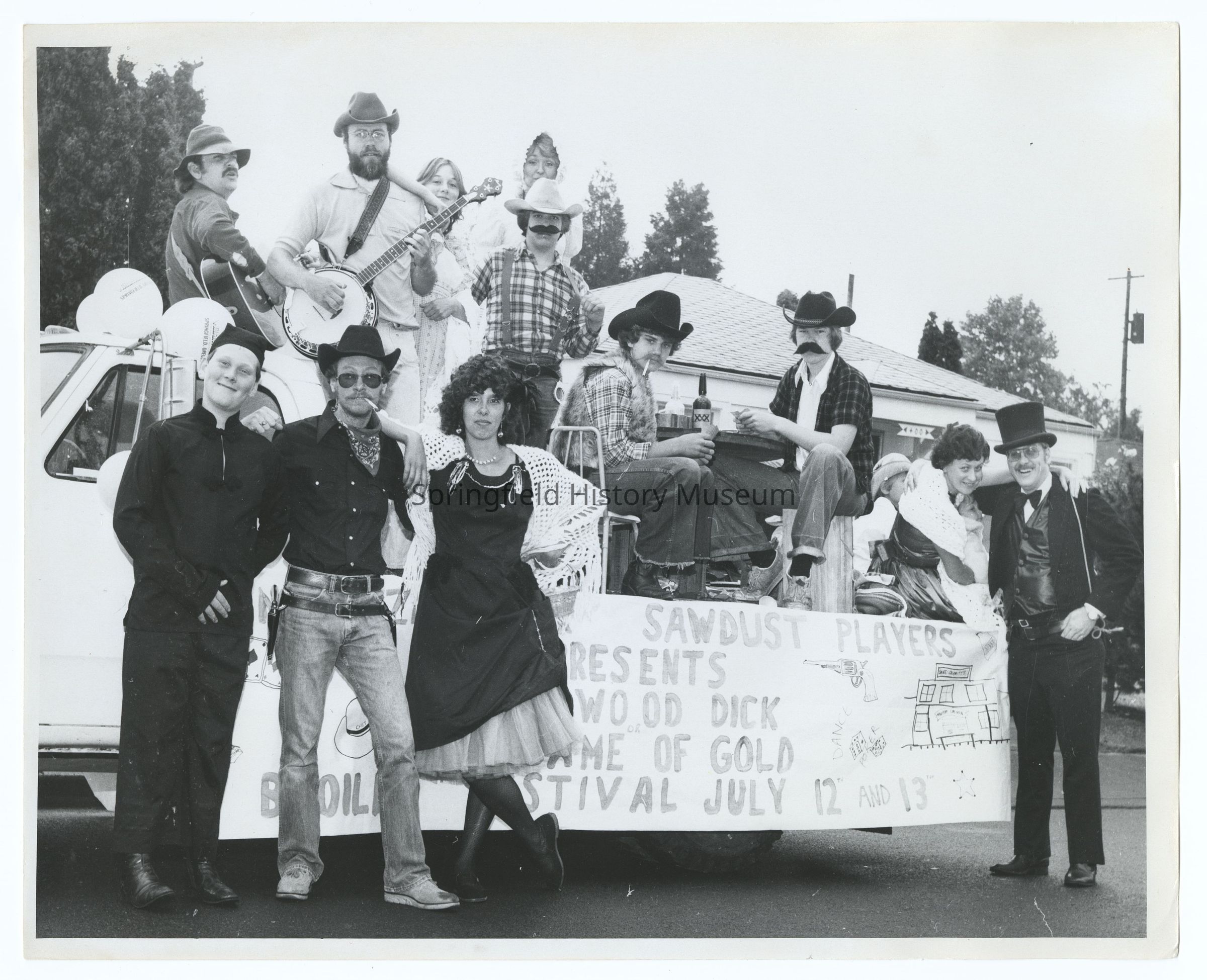 Photograph of a Summer Parade, Springfield, circa 1980, undated. "Sawdust Players."Photograph Details