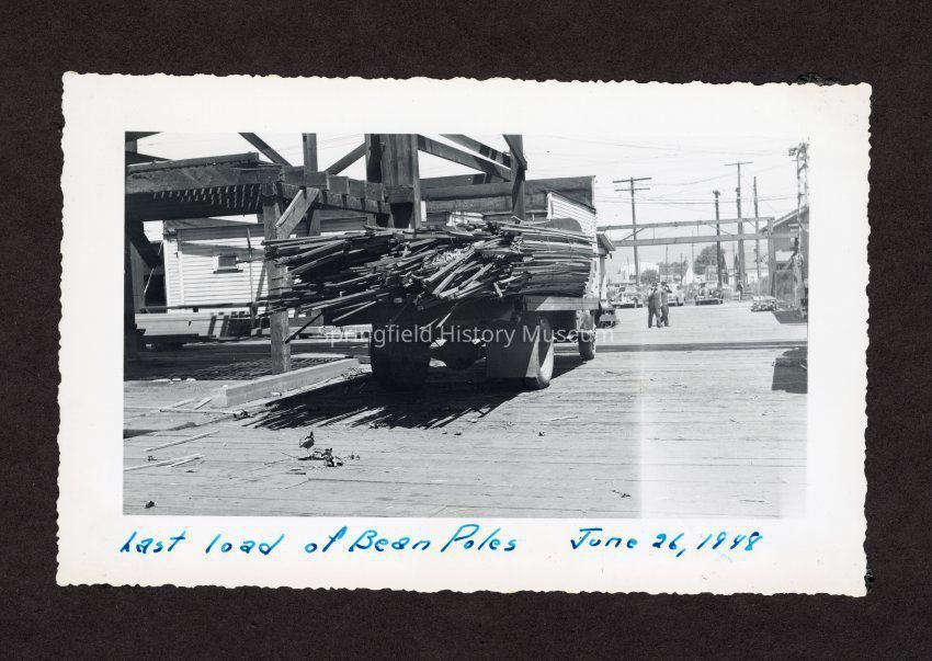 Photograph of "last load of bean poles June 26, 1948" written in pen at the bottom